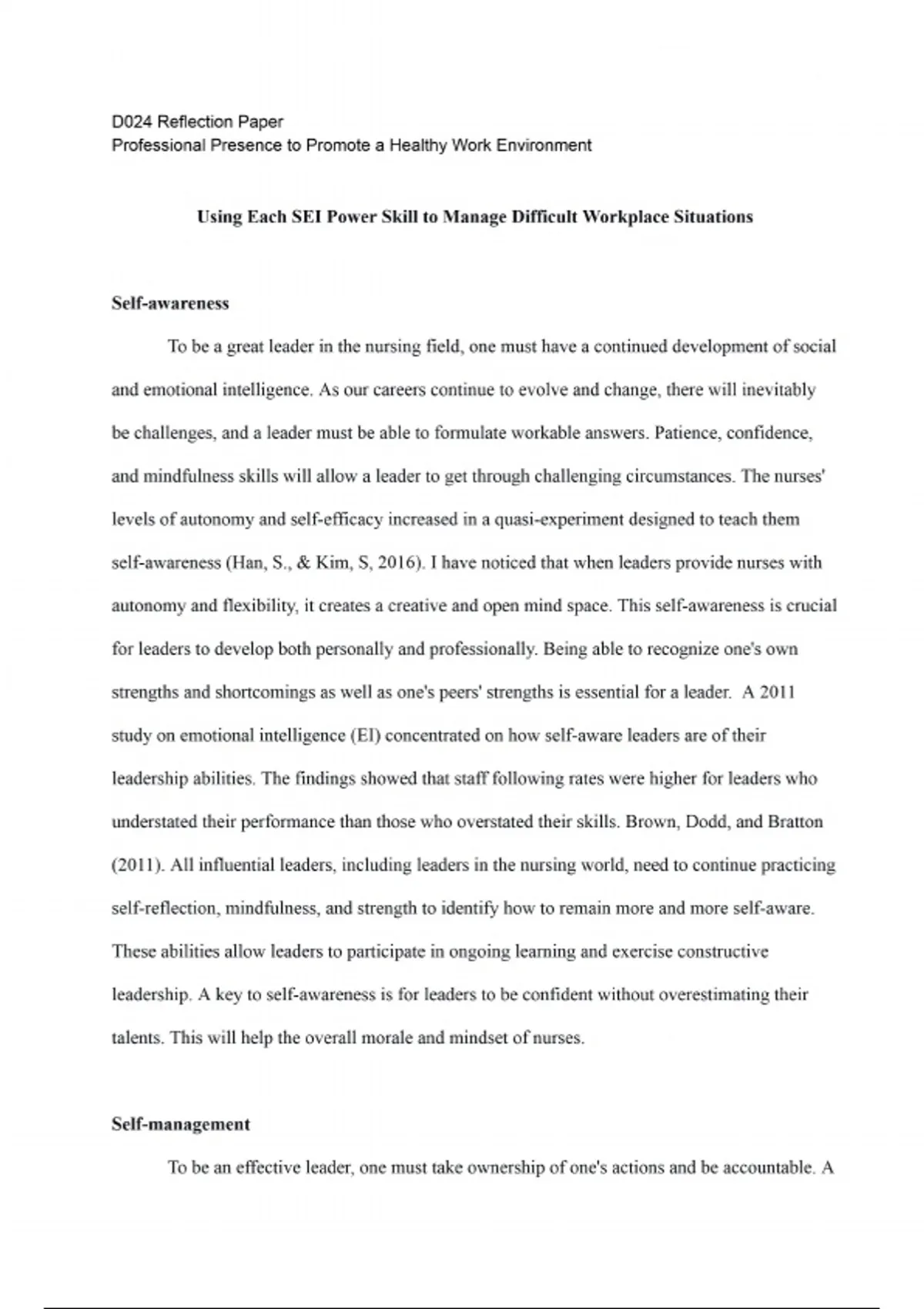 detail are all crucial aspects of self-management. Before a leader can