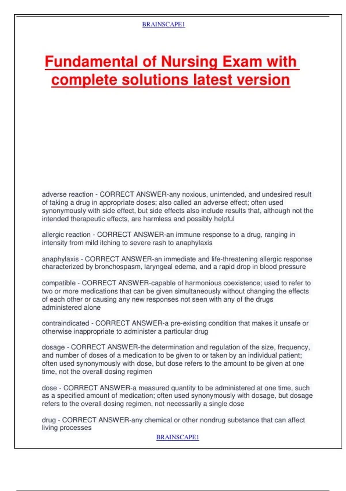 Fundamental of Nursing Exam with