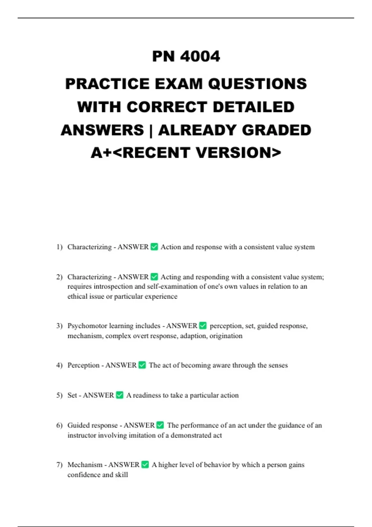 3) Psychomotor learning includes - ANSWER perception, set, guided response,