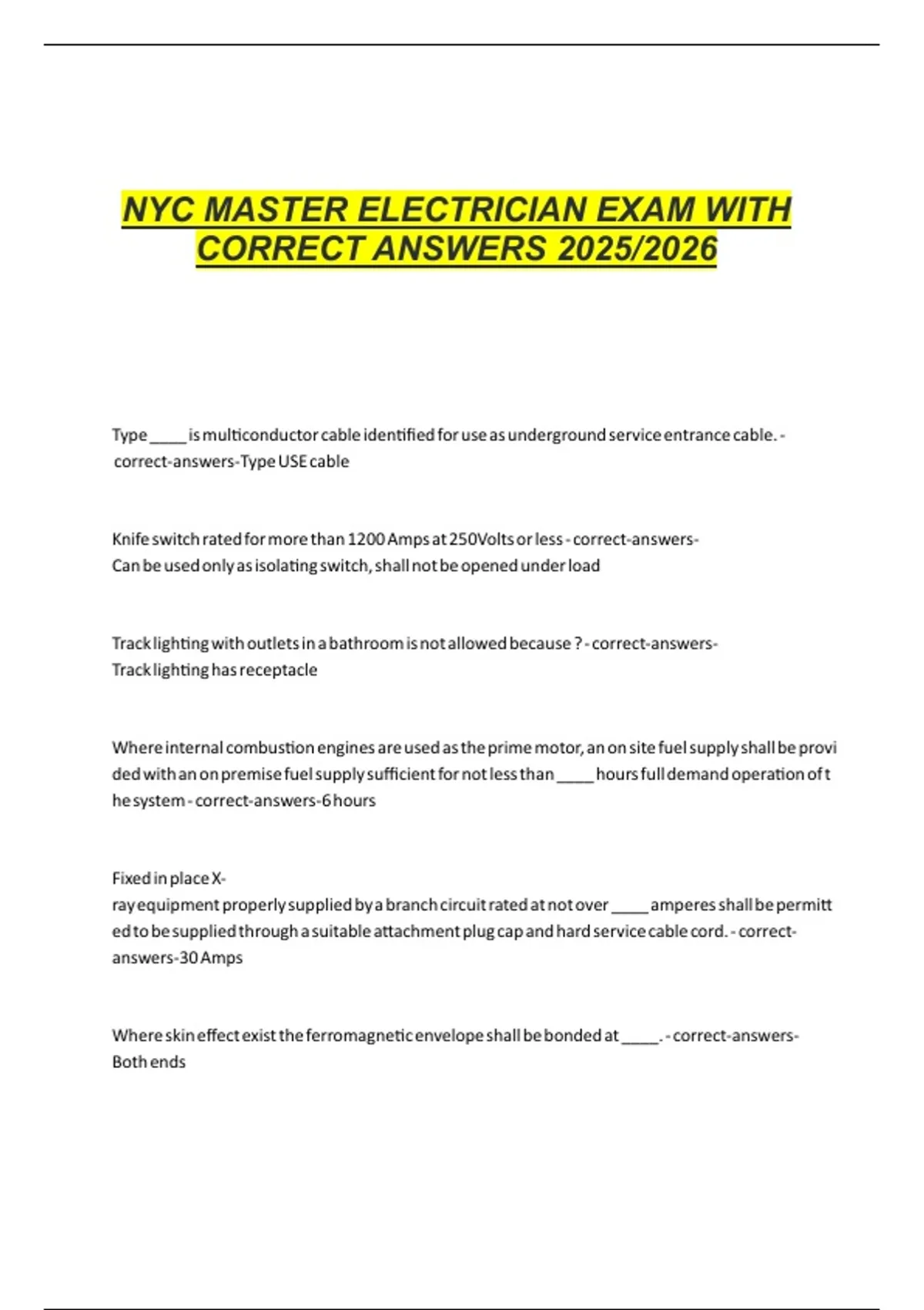 NYC MASTER ELECTRICIAN EXAM WITH CORRECT ANSWERS 2025.