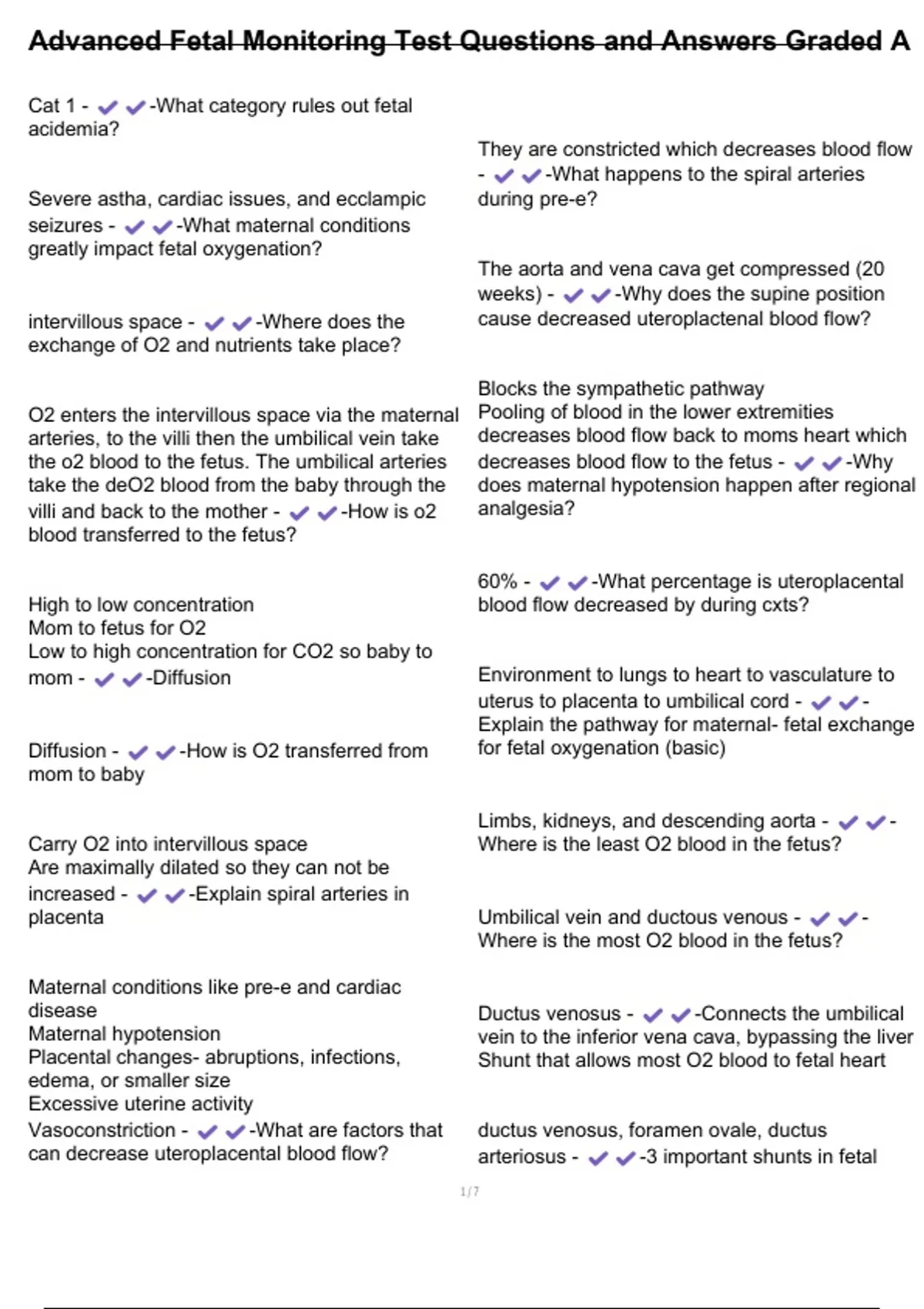 , Advanced Fetal Monitoring Test Questions and Answers Graded A