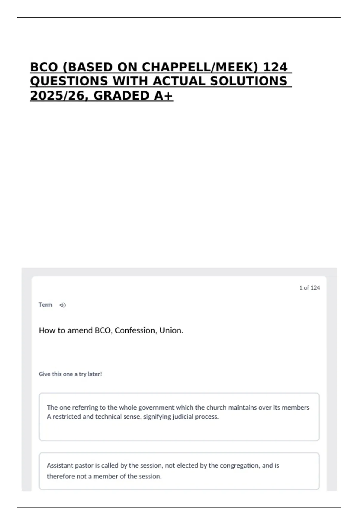 BCO (BASED ON CHAPPELL/MEEK) 124 QUESTIONS WITH ACTUAL SOLUTIONS 2025/26, GRADED A+