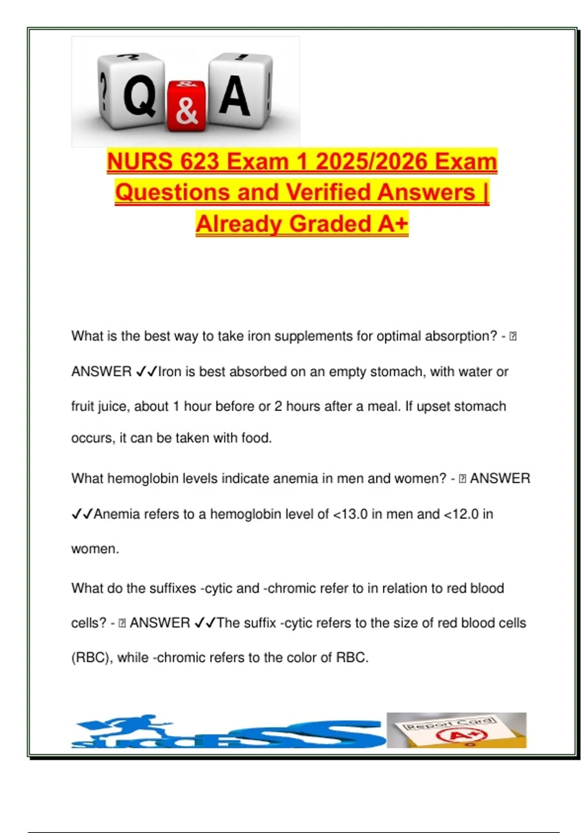 anemia? - 🧠 ANSWER ✔✔Serum ferritin is the single most powerful test for