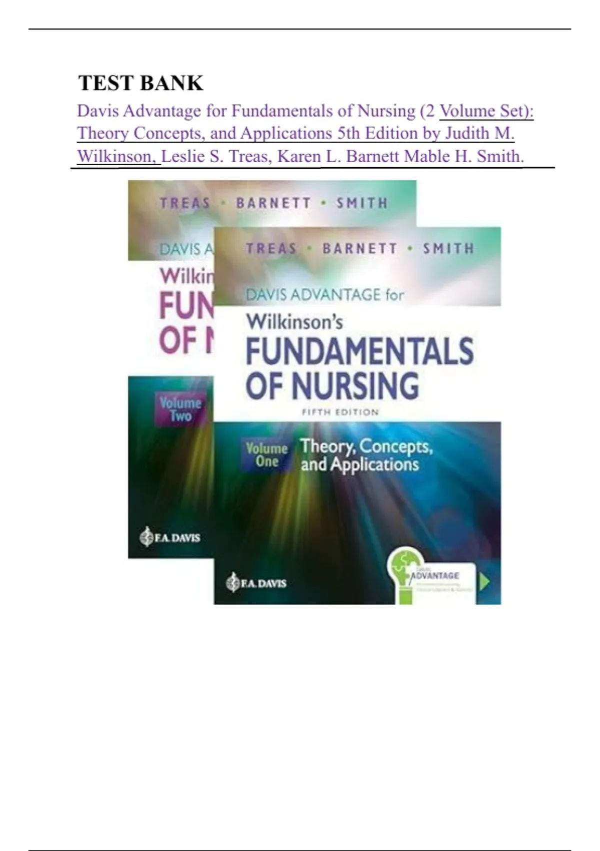 Davis Advantage for Fundamentals of Nursing (2 Volume Set):