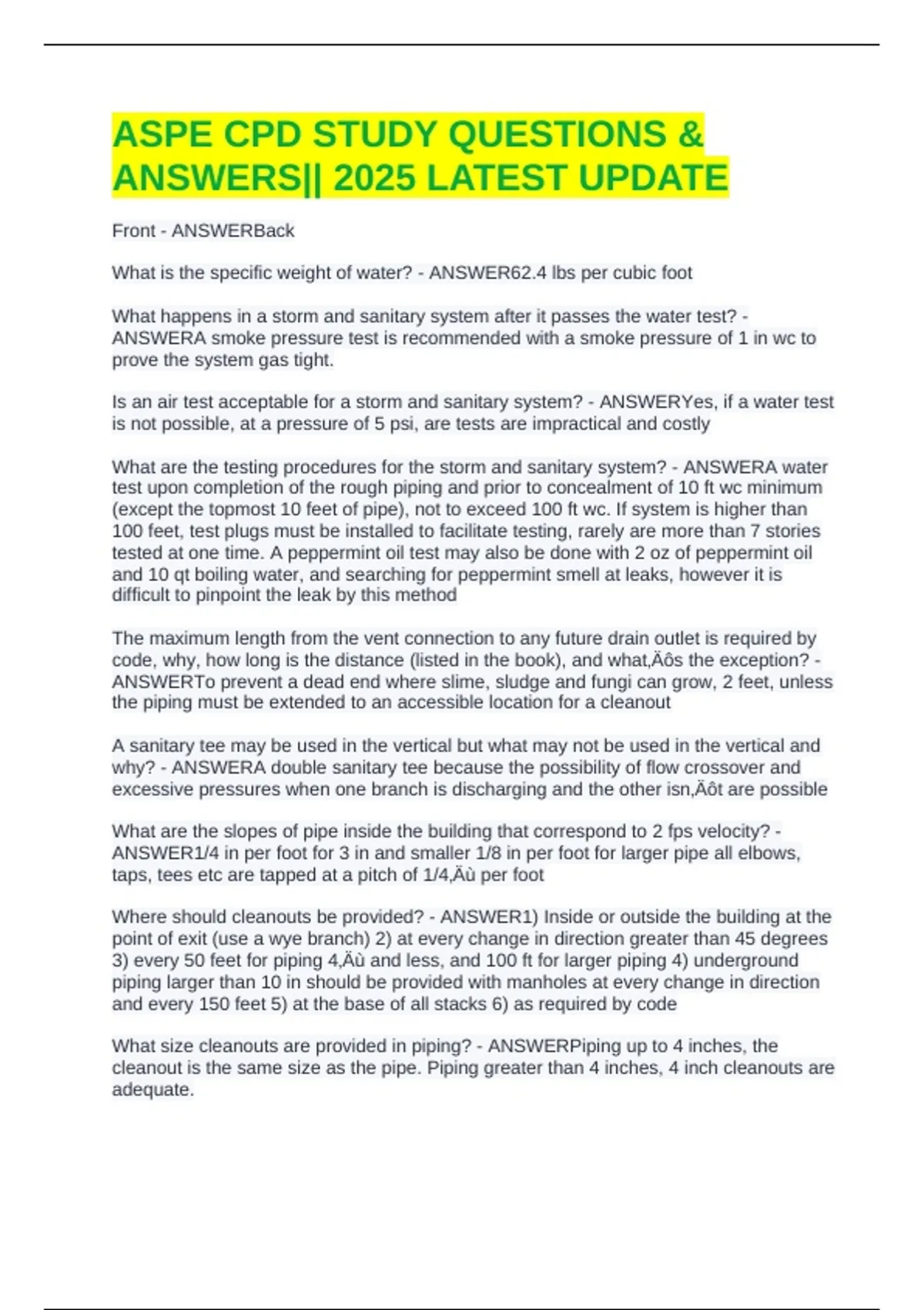 ASPE CPD STUDY QUESTIONS & ANSWERS|| 2025 LATEST UPDATE