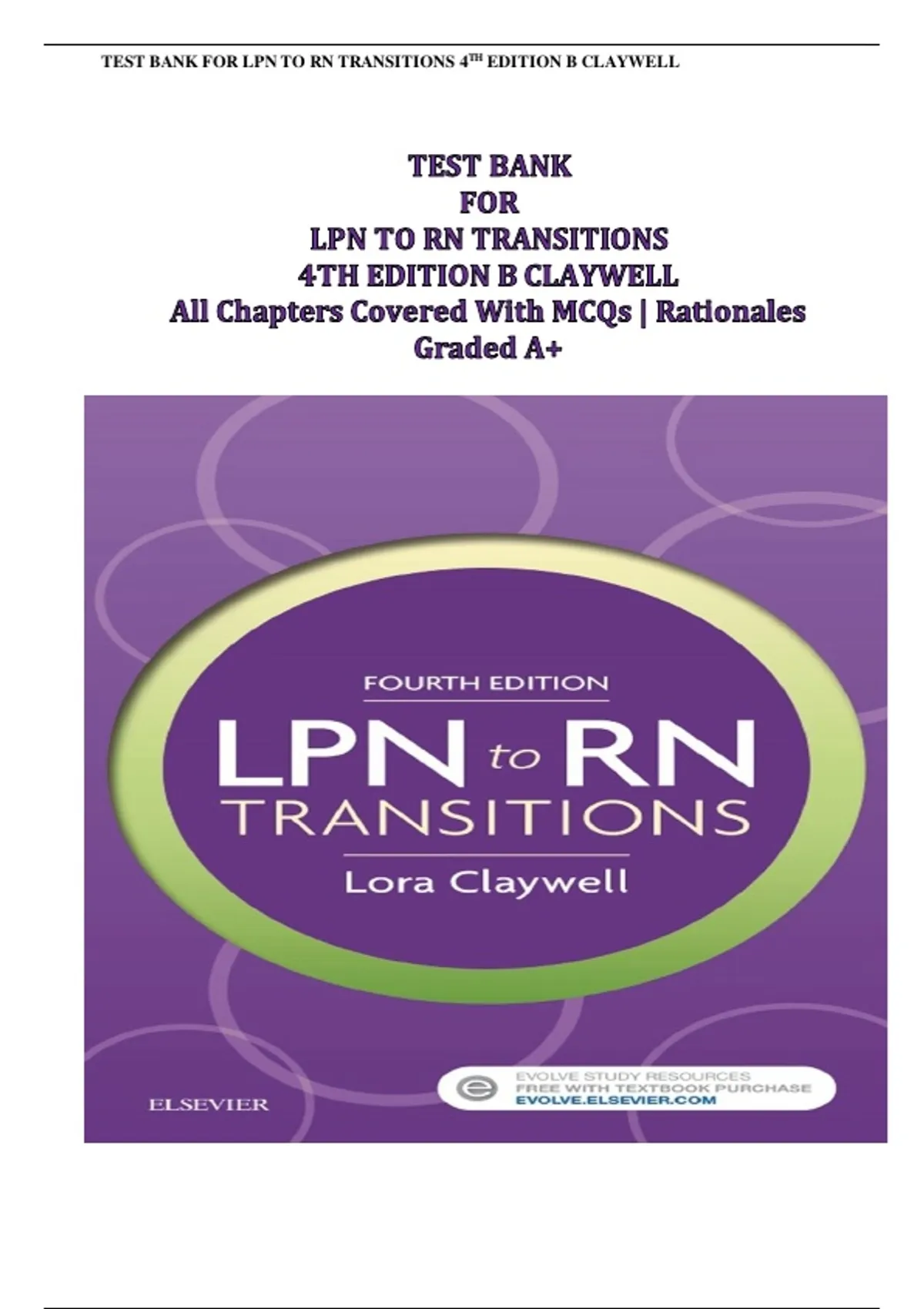 ,TEST BANK FOR LPN TO RN TRANSITIONS 4TH EDITION B CLAYWELL