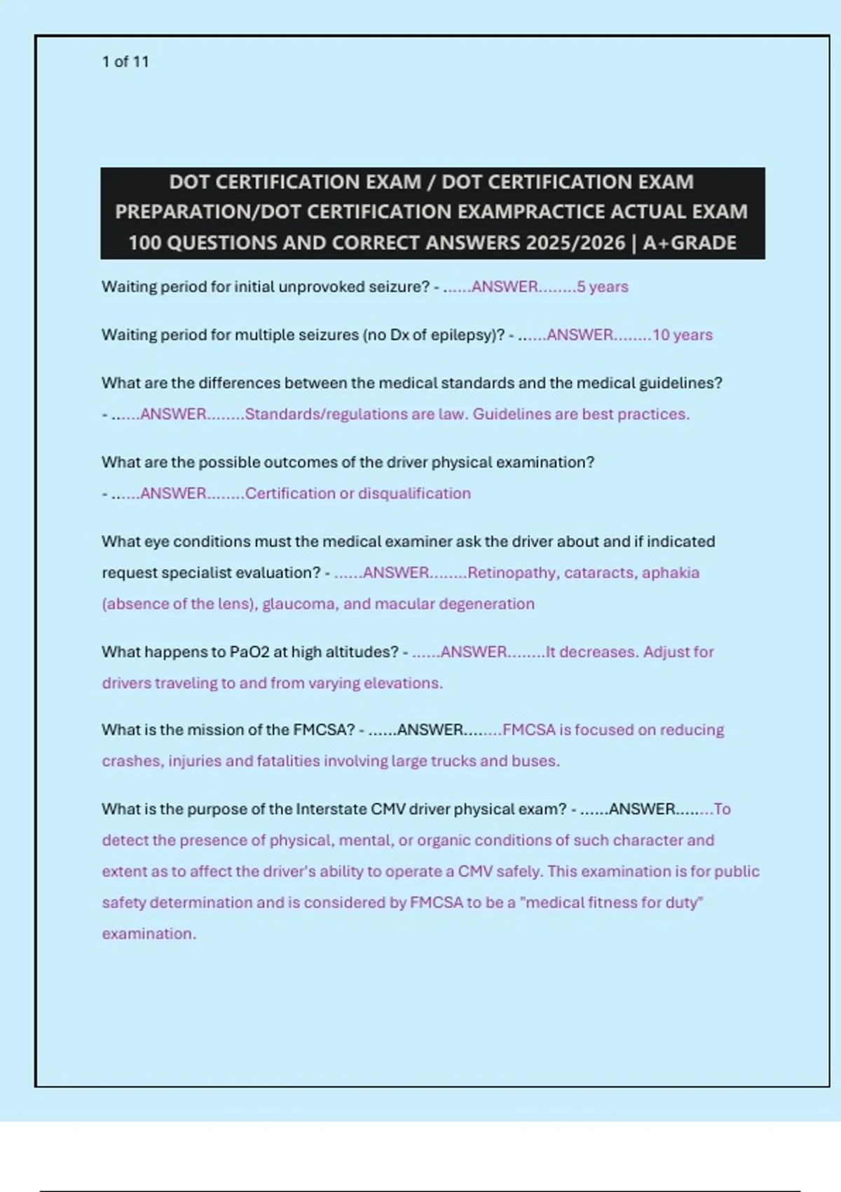 DOT CERTIFICATION EXAM / DOT CERTIFICATION EXAM