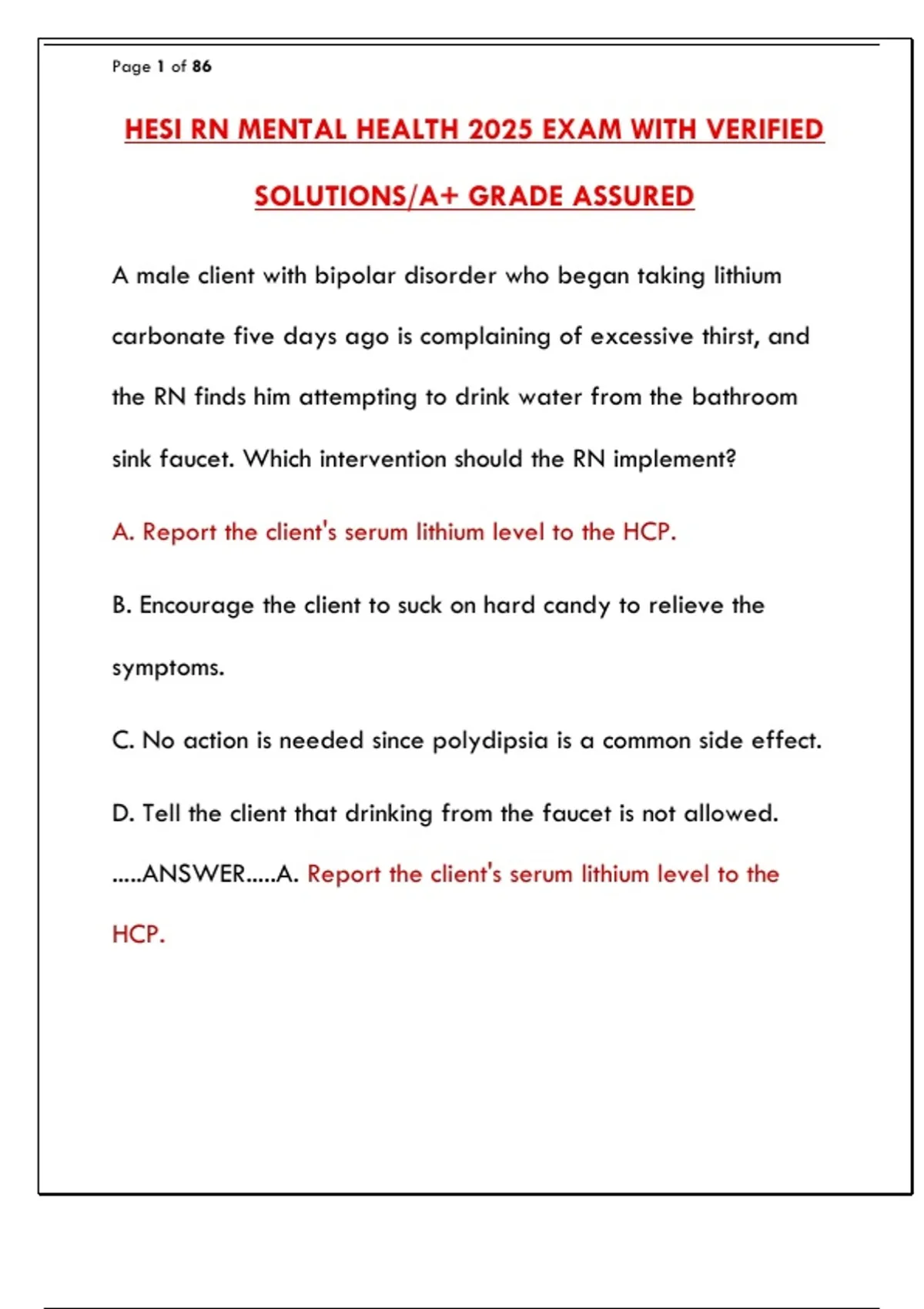 HESI RN MENTAL HEALTH 2025 EXAM WITH VERIFIED