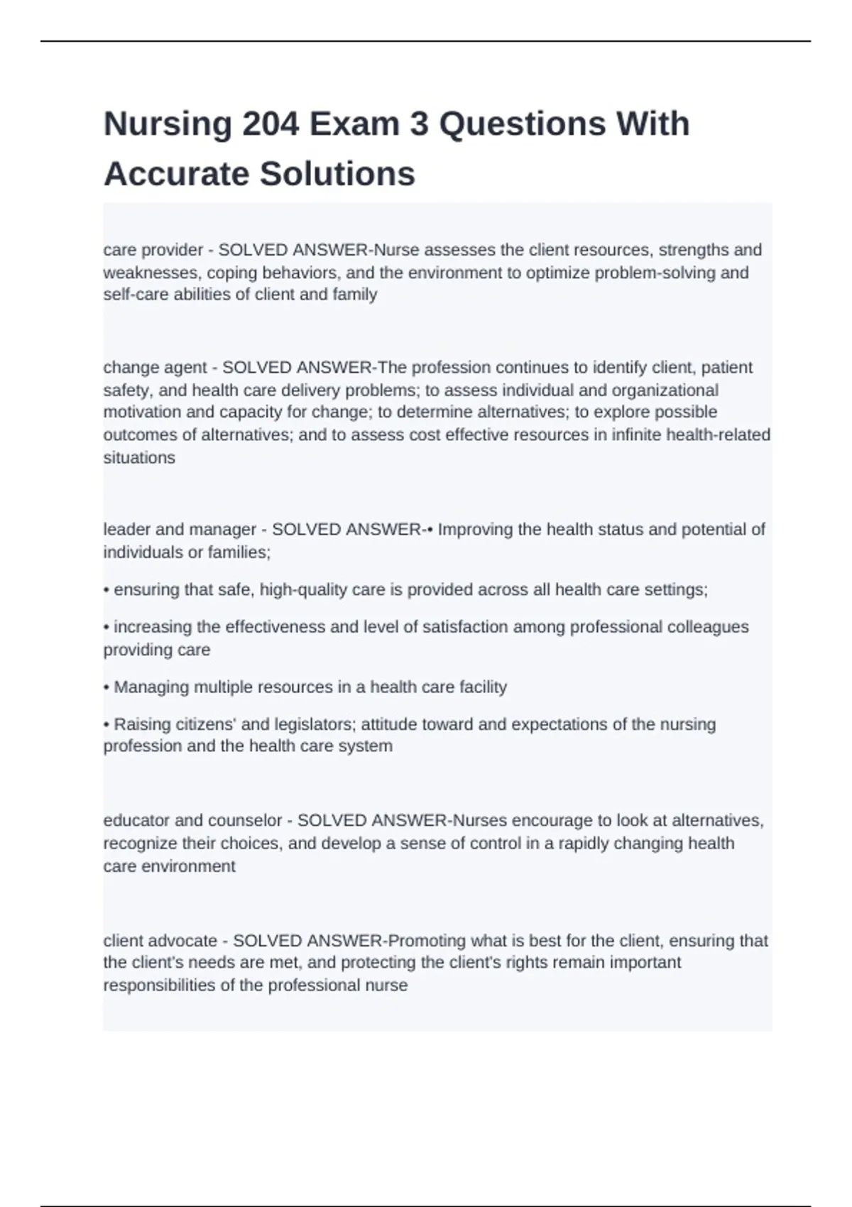 care provider - SOLVED ANSWER-Nurse assesses the client resources, strengths and