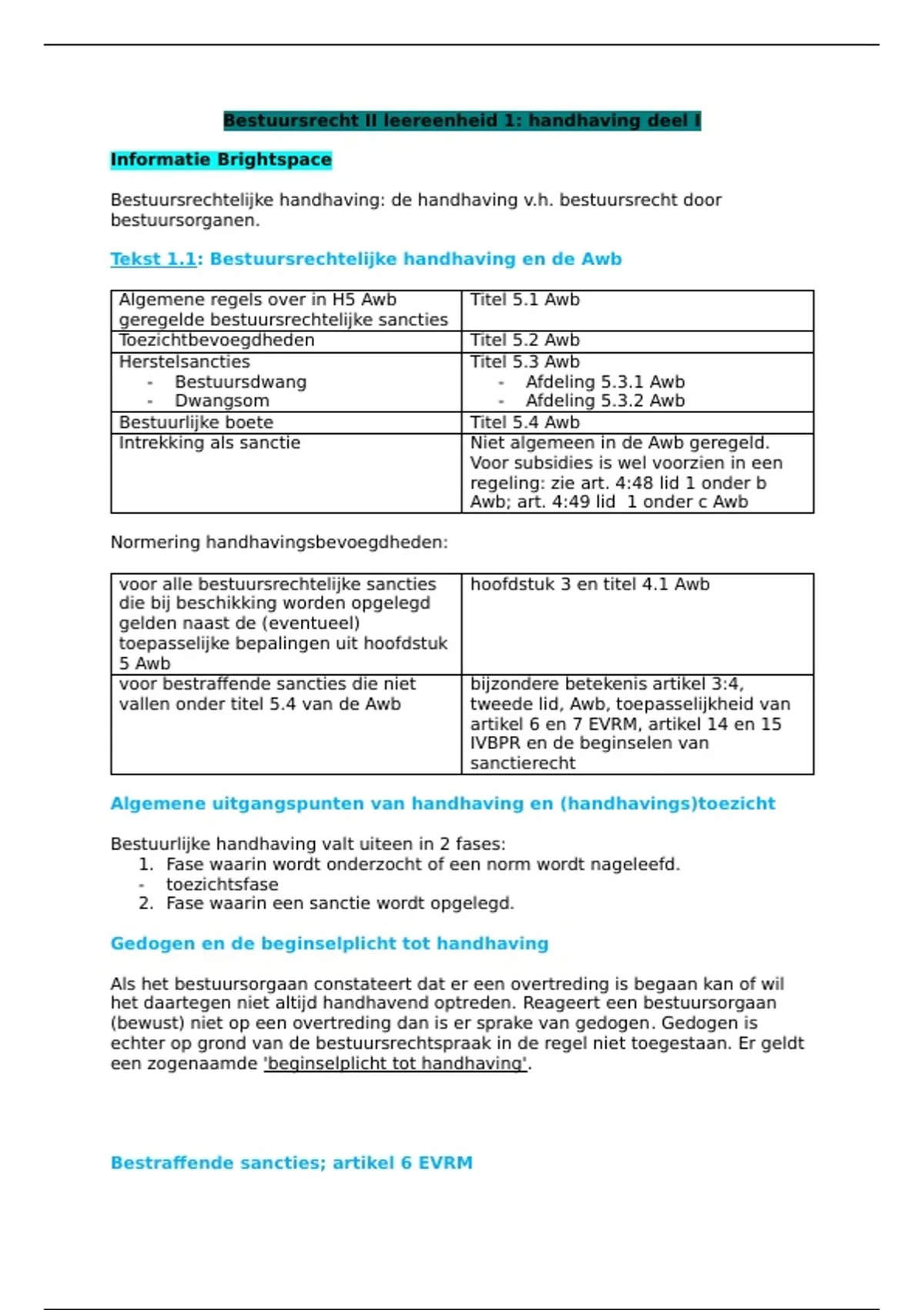Tekst 1.1: Bestuursrechtelijke handhaving en de Awb