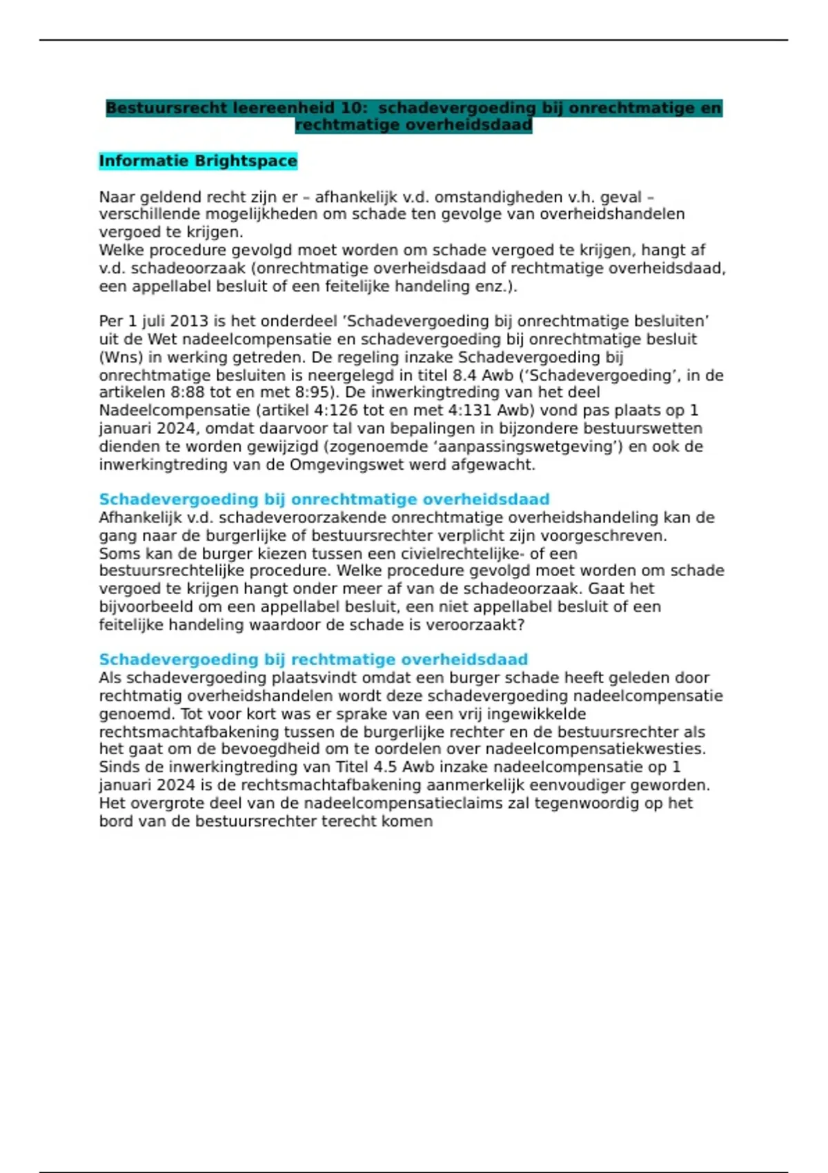 Bestuursrecht leereenheid 10: schadevergoeding bij onrechtmatige en