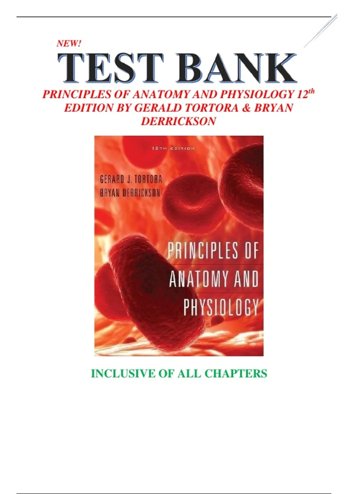 Test Bank - Principles of Anatomy and Physiology, 12th Edition, by Bryan Derrickson, Gerald Tortora. Latest | 2025