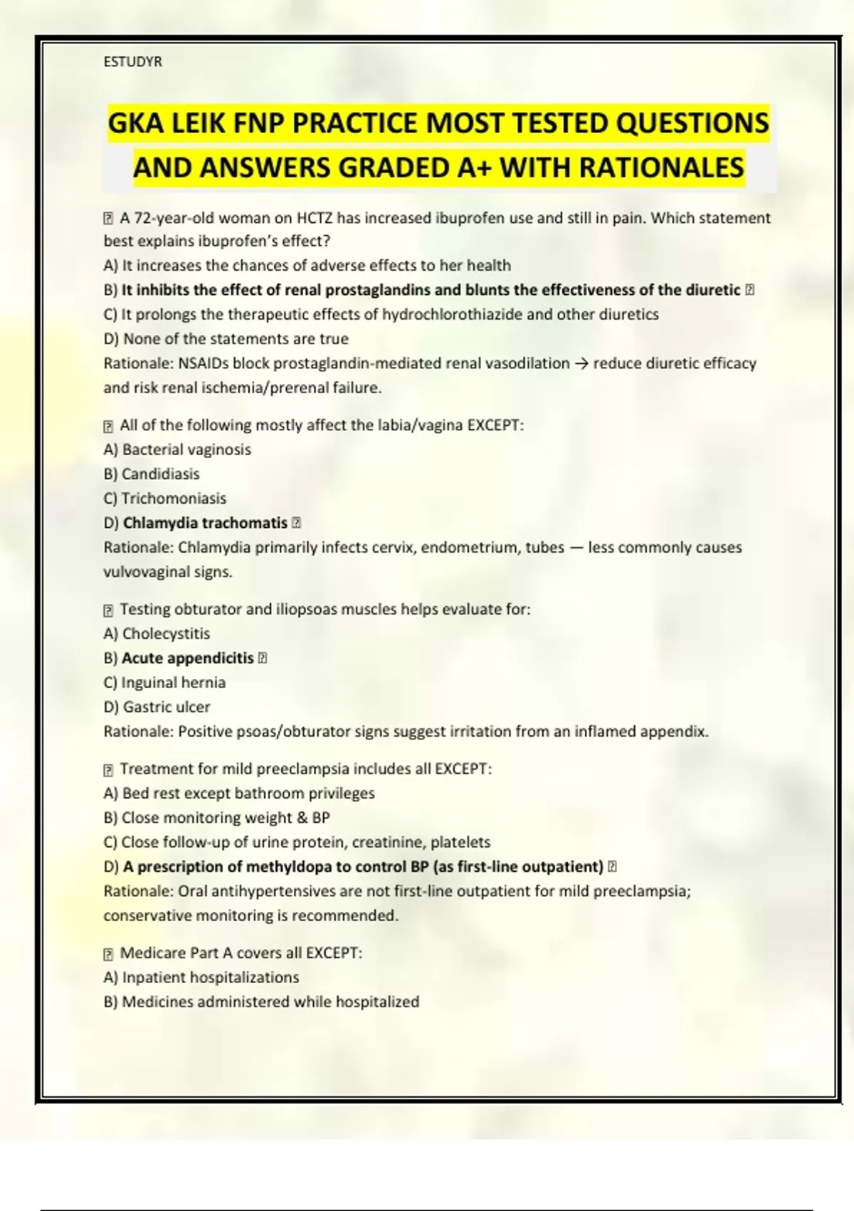 GKA LEIK FNP PRACTICE MOST TESTED QUESTIONS AND ANSWERS GRADED A+ WITH RATIONALES
