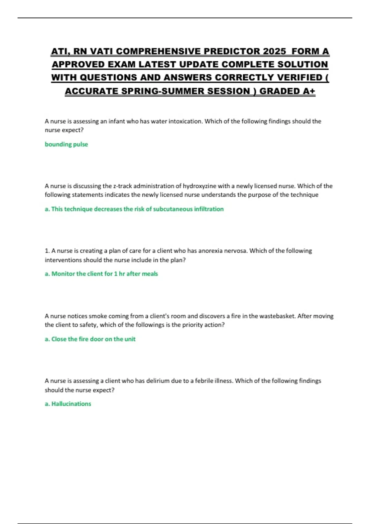 APPROVED EXAM LATEST UPDATE COMPLETE SOLUTION