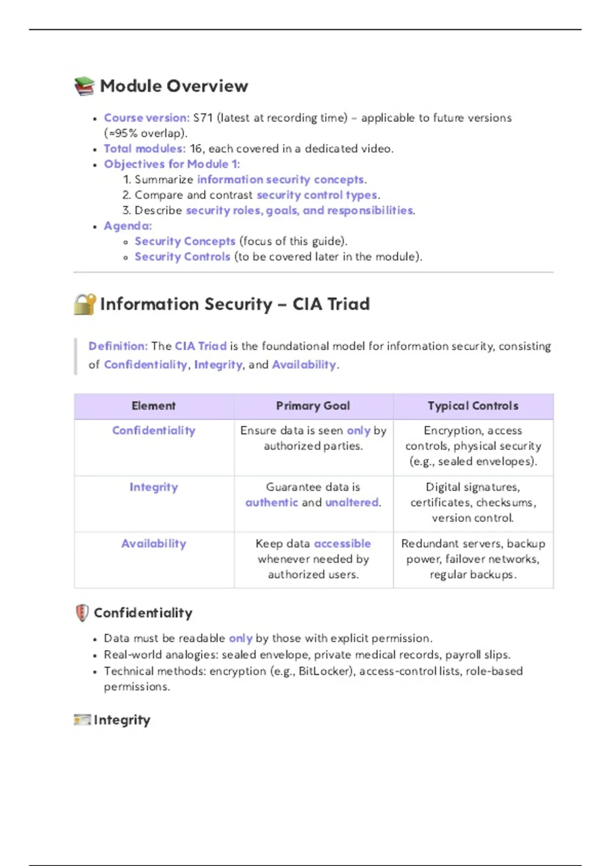 Understanding how these controls map to the CIA Triad is essential for aligning