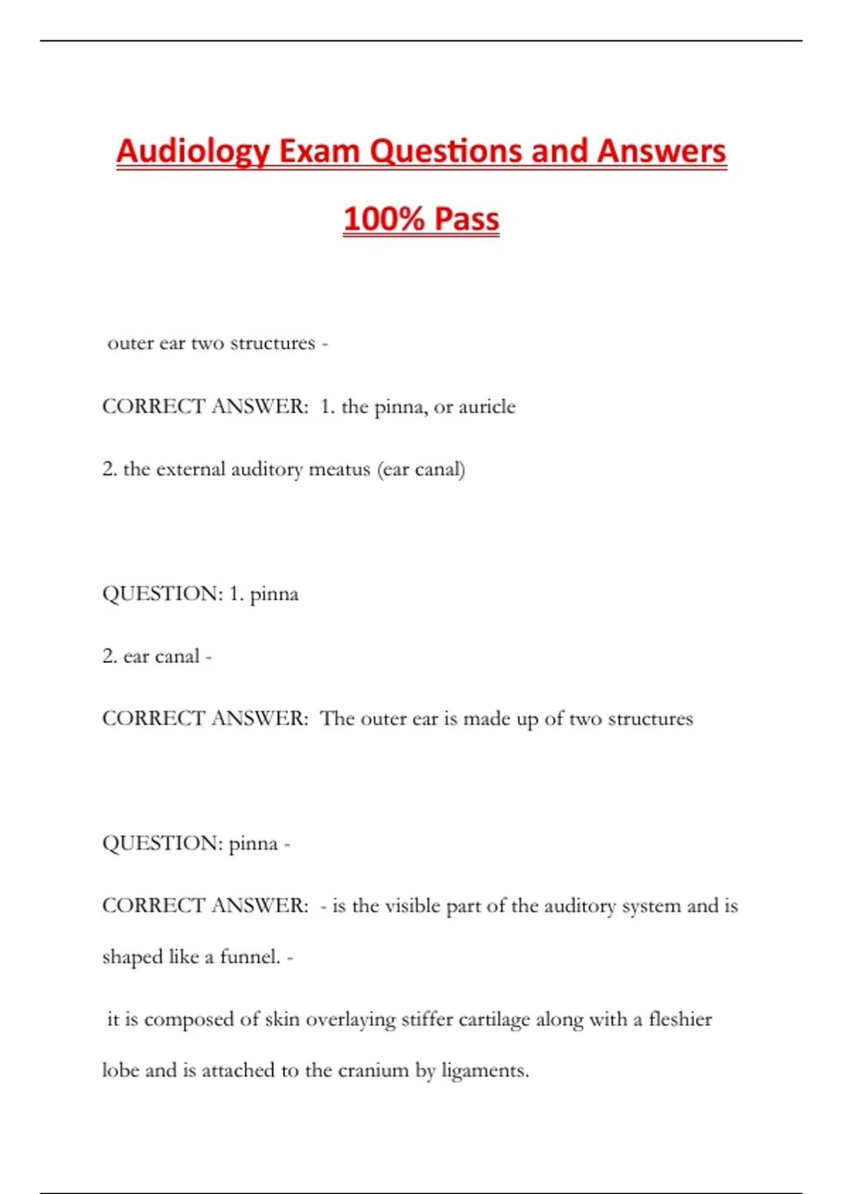 Audiology Exam Questions and Answers 100% Pass
