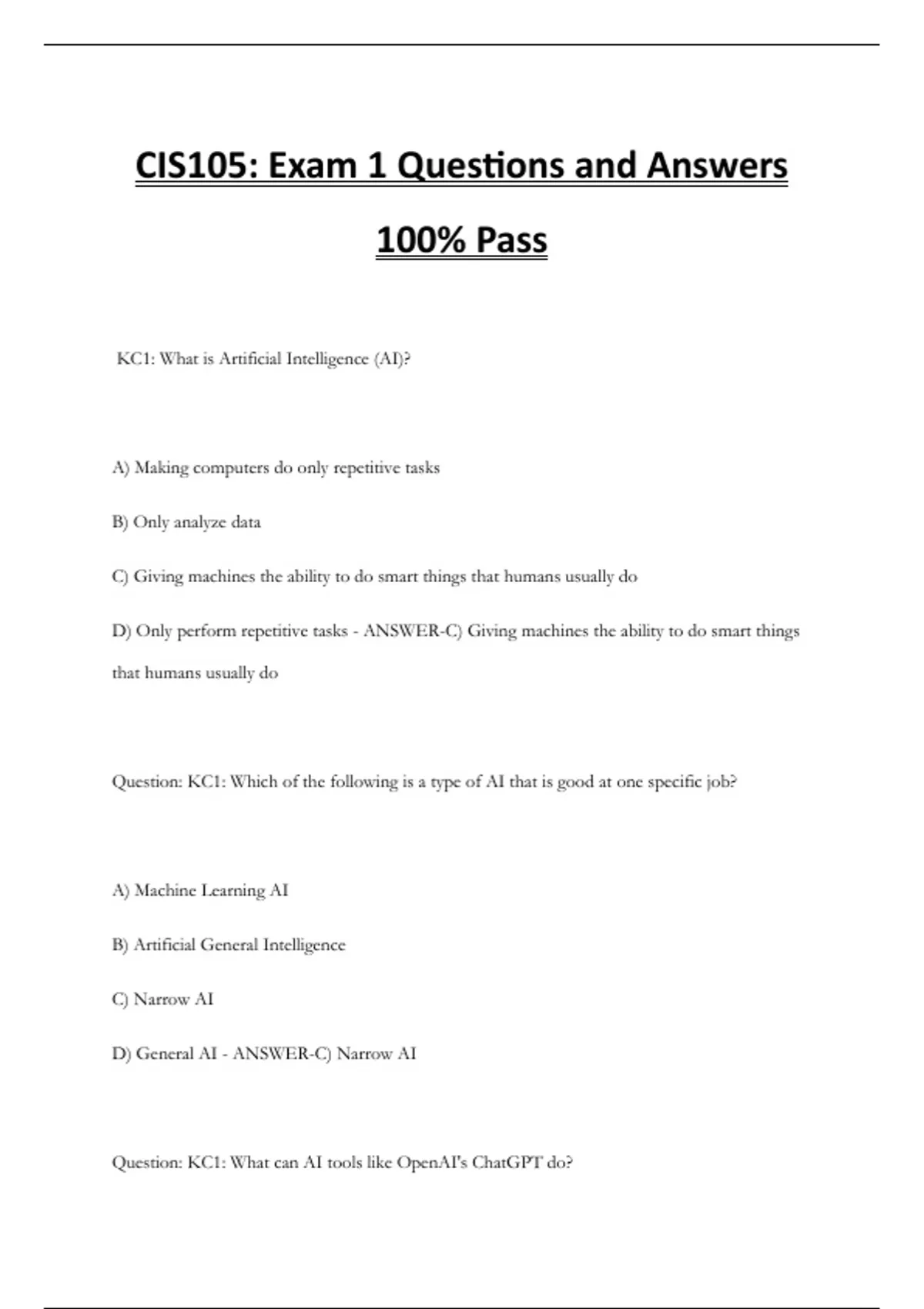 CIS105: Exam 1 Questions and Answers 100% Pass