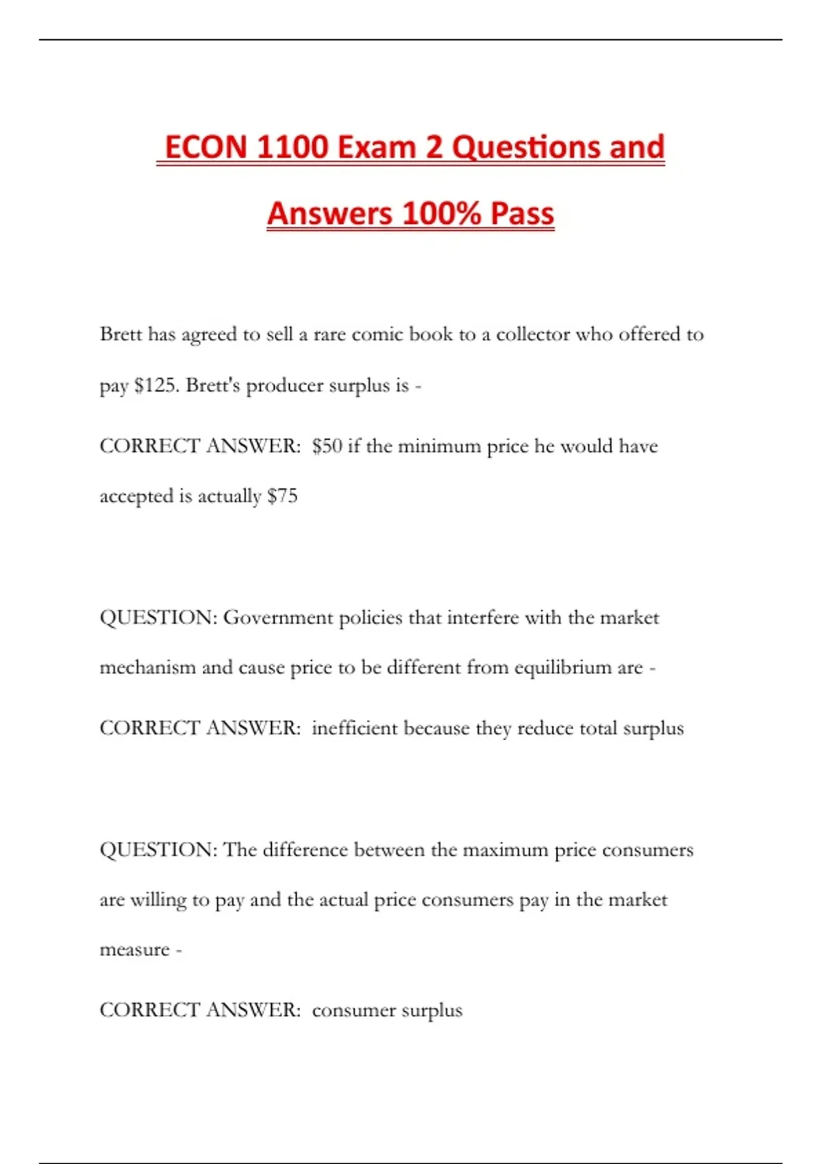 ECON 1100 Exam 2 Questions and Answers 100% Pass