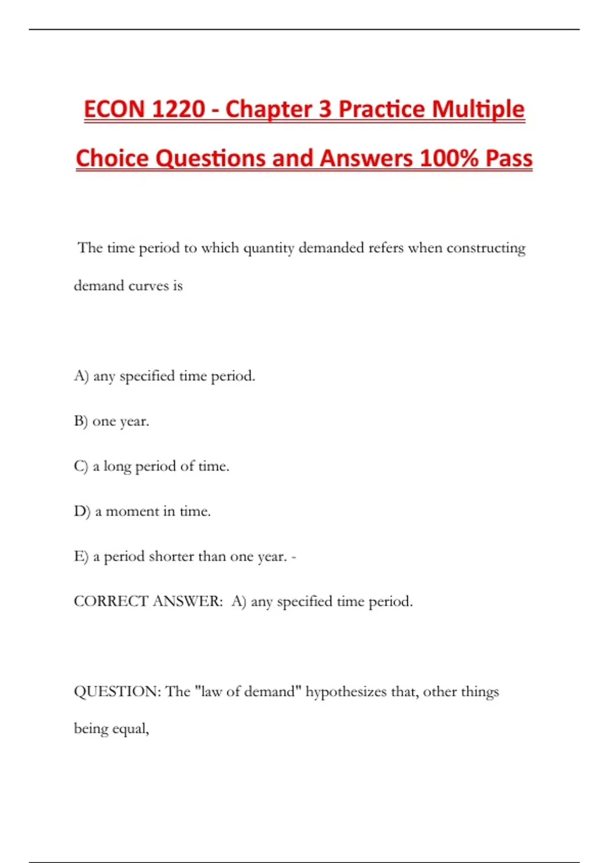 ECON 1220 - Chapter 3 Practice Multiple Choice Questions and Answers 100% Pass
