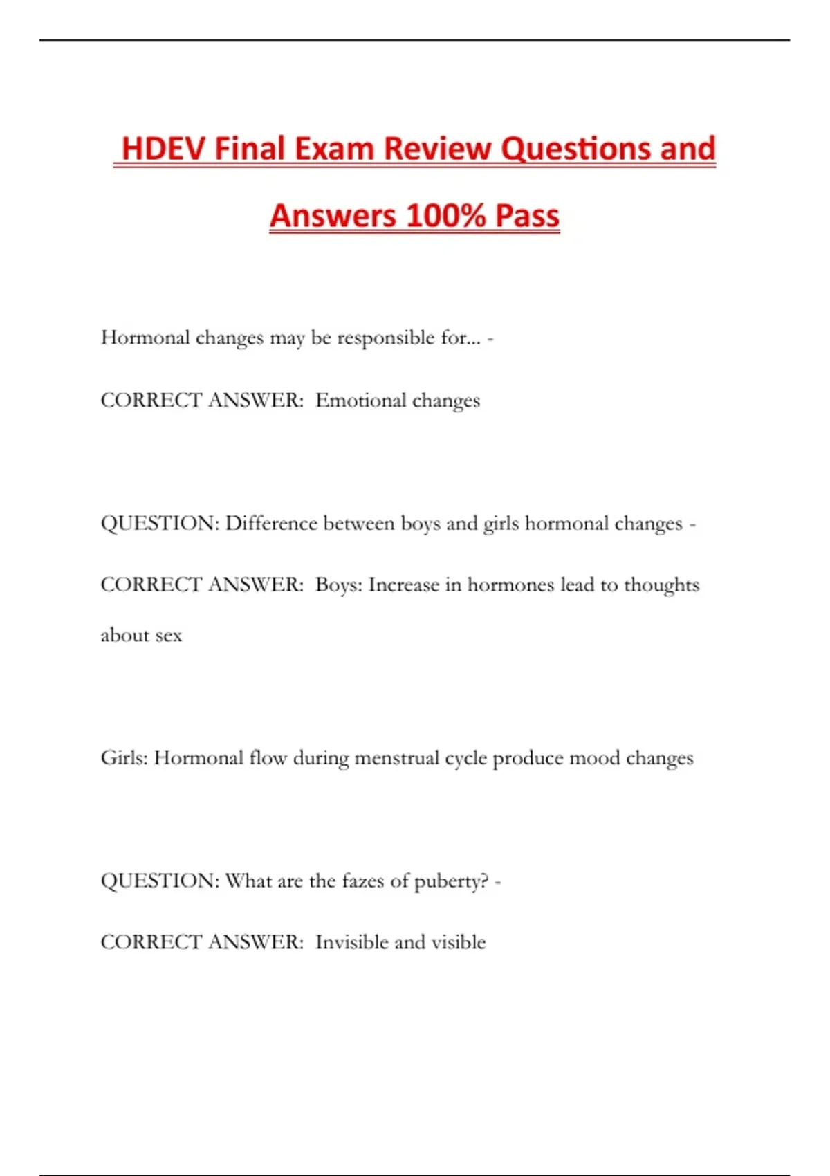 HDEV Final Exam Review Questions and