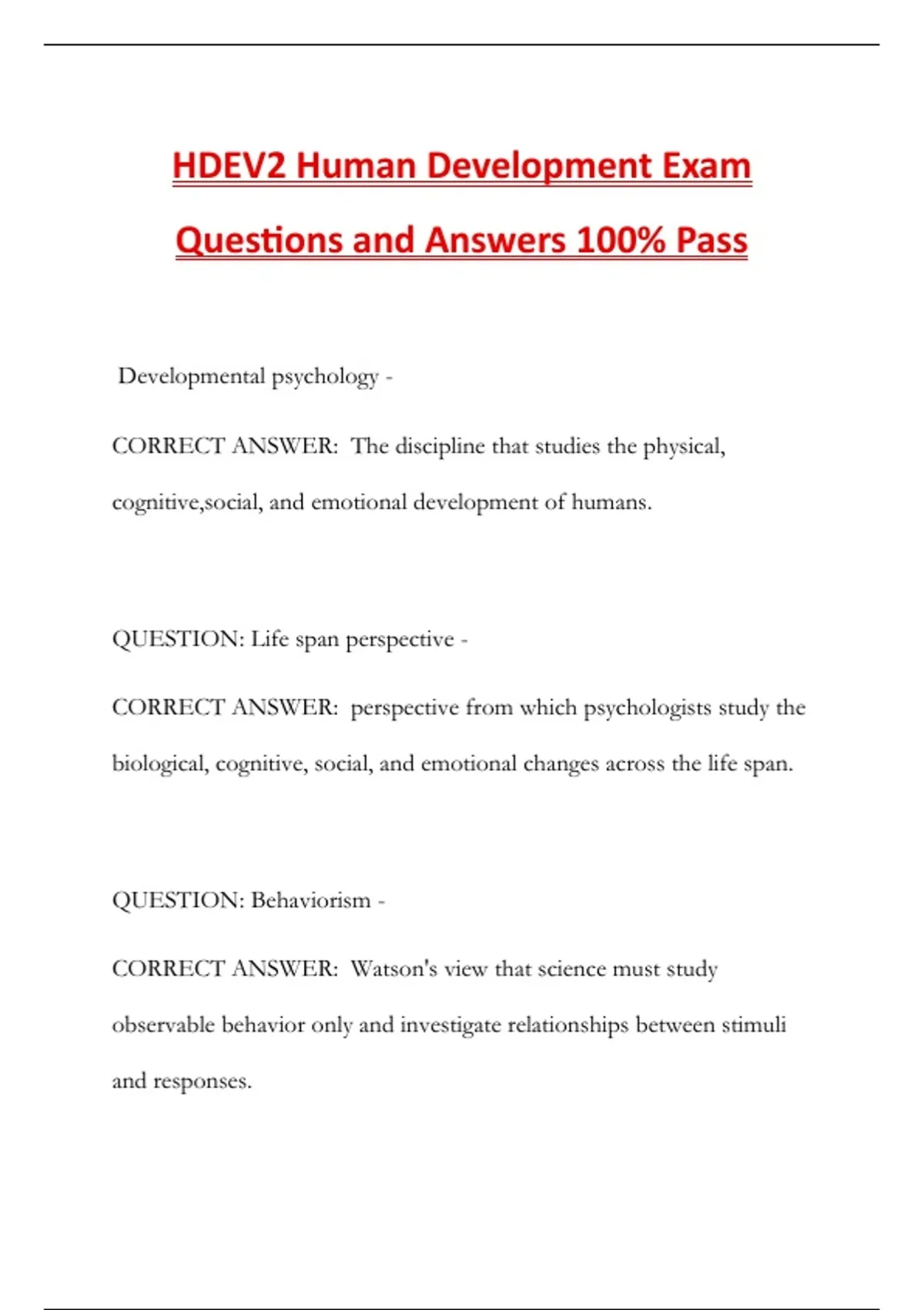 HDEV2 Human Development Exam Questions and Answers 100% Pass