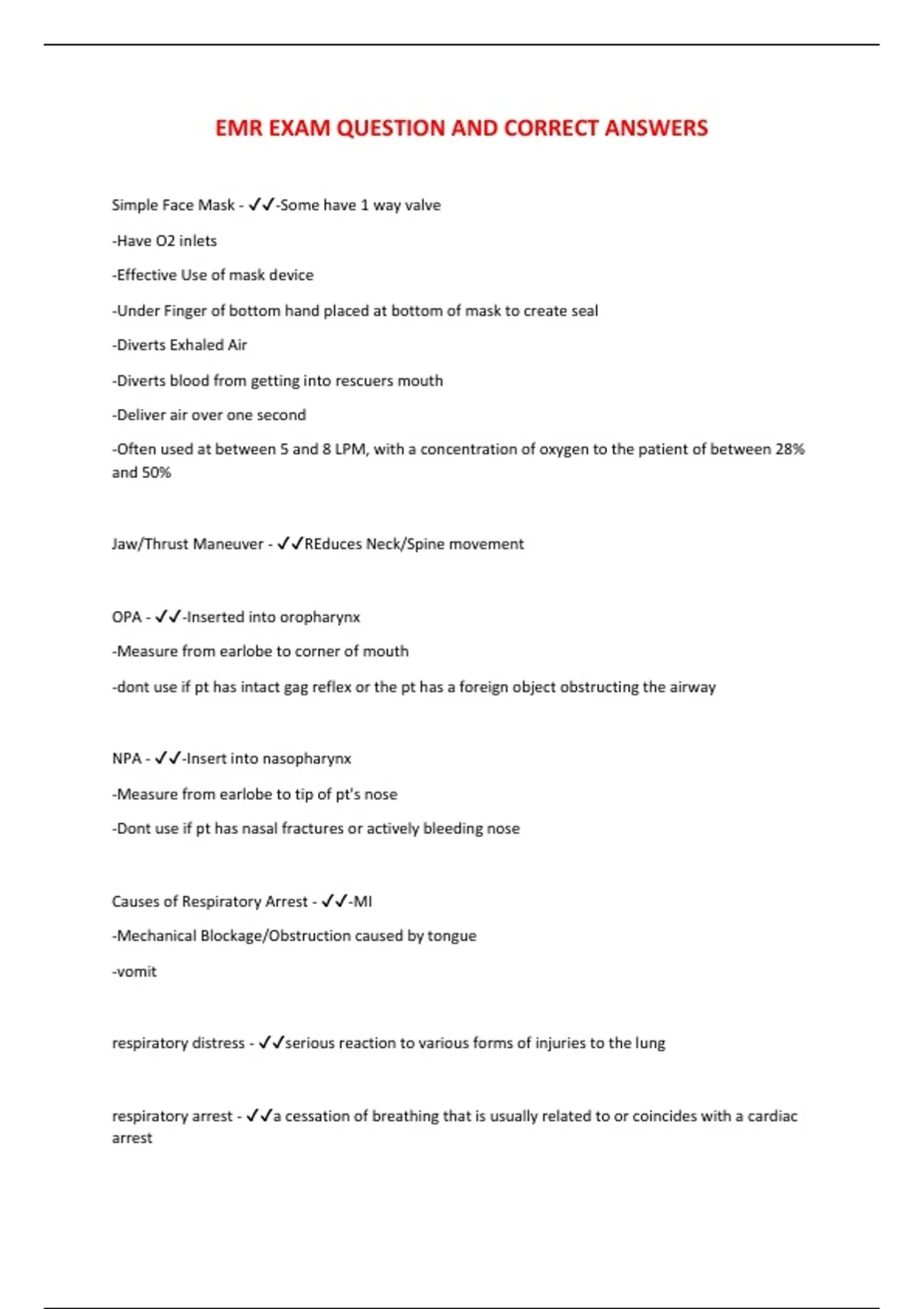 EMR EXAM QUESTION AND CORRECT ANSWERS