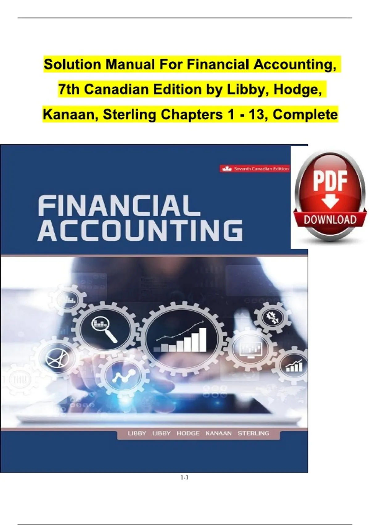 This complete solution manual covers Chapters 1–13 from Financial Accounting (7th Canadian Edition) by Libby, Hodge, Kanaan, and Sterling. It provides fully worked, step-by-step solutions to all end-of-chapter problems and exercises, including financial statement analysis, accounting transactions, adjusting entries, and cash flow statements. Ideal for students seeking to deepen their understanding of key accounting principles and verify their work with accurate, instructor-approved solutions. Solution Manual for Financial Accounting (7th Canadian Edition) by Libby, Hodge, Kanaan & Sterling | Complete Chapters 1–13 | Verified AnswersSolution Manual for Financial Accounting (7th Canadian Edition) by Libby, Hodge, Kanaan & Sterling | Complete Chapters 1–13 | Verified AnswersSolution Manual for Financial Accounting (7th Canadian Edition) by Libby, Hodge, Kanaan & Sterling | Complete Chapters 1–13 | Verified AnswersSolution Manual for Financial Accounting (7th Canadian Edition) by Libby, Hodge, Kanaan & Sterling | Complete Chapters 1–13 | Verified AnswersSolution Manual for Financial Accounting (7th Canadian Edition) by Libby, Hodge, Kanaan & Sterling | Complete Chapters 1–13 | Verified AnswersSolution Manual for Financial Accounting (7th Canadian Edition) by Libby, Hodge, Kanaan & Sterling | Complete Chapters 1–13 | Verified Answers