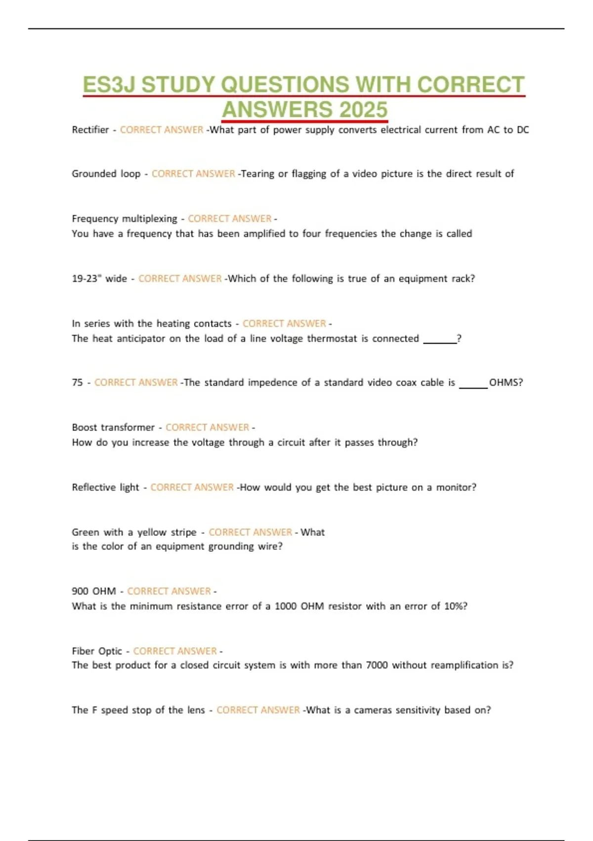 Fiber Optic Cable - CORRECT ANSWER -