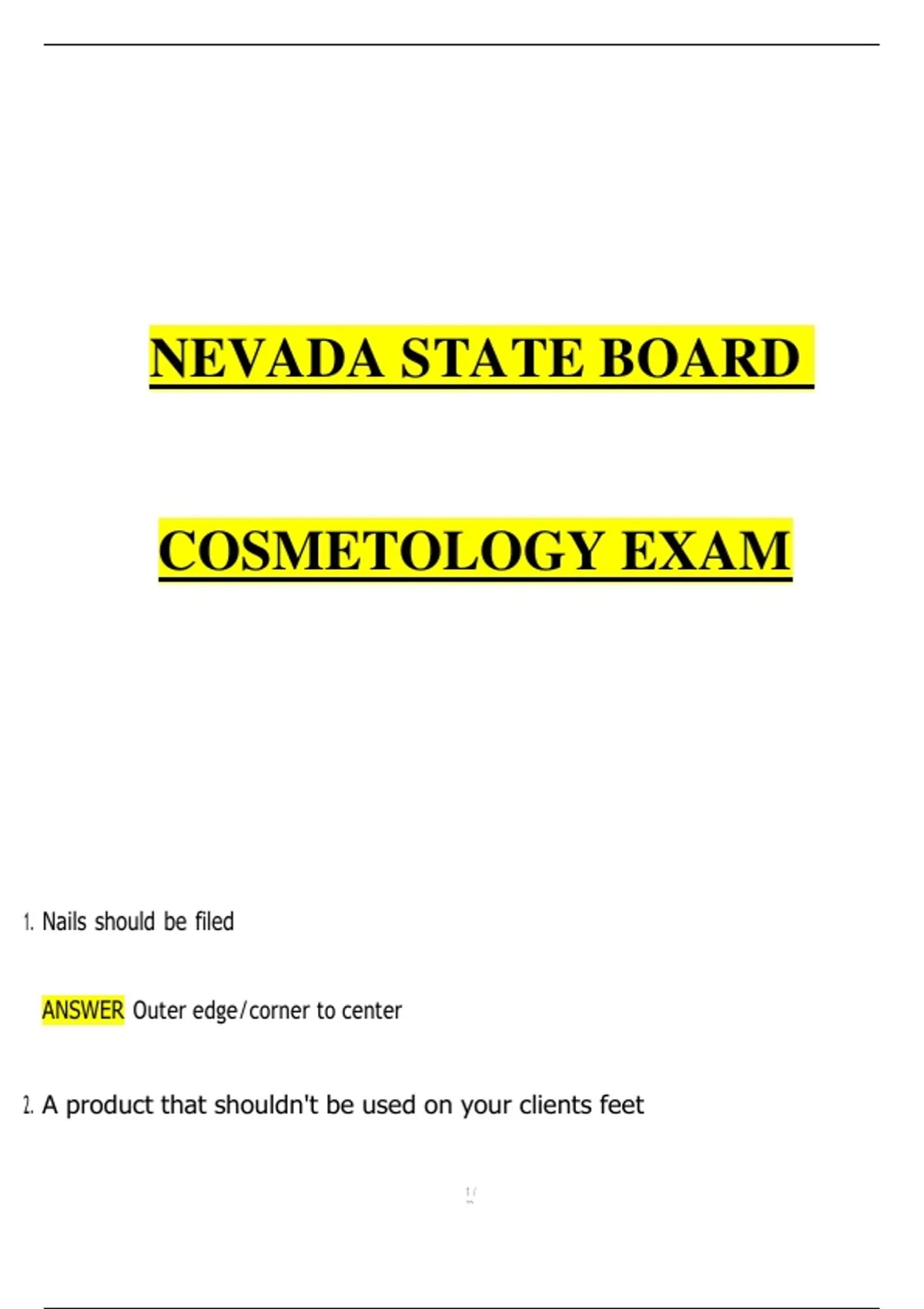 COSMETOLOGY EXAM