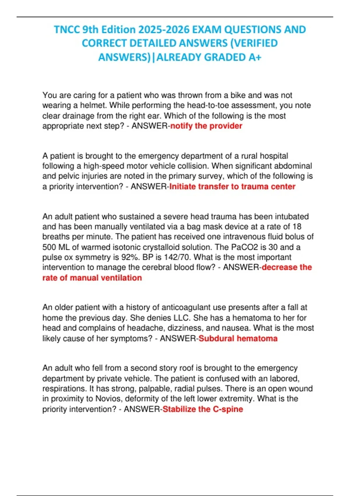 priority intervention? - ANSWER-Stabilize the C-spine