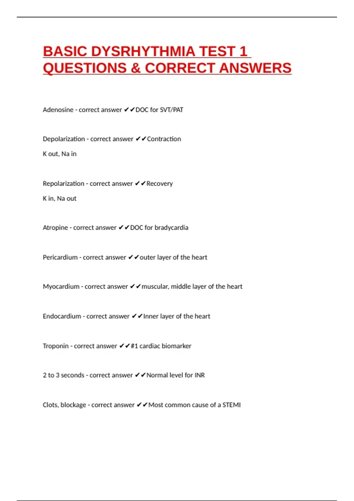 Atropine - correct answer ✔✔DOC for bradycardia