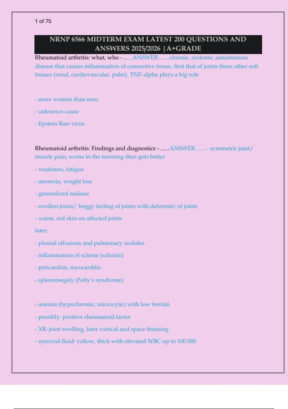 Rheumatoid arthritis: what, who - ......ANSWER........chronic, systemic autoimmune