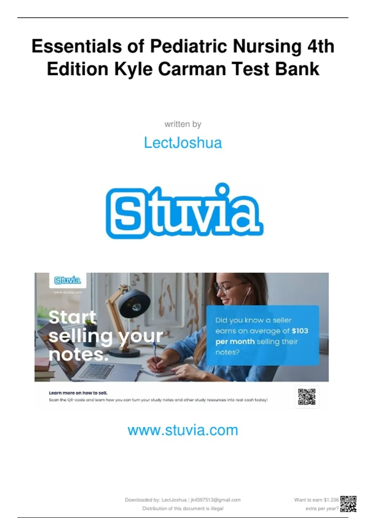 TEST BANK FOR ESSENTIALS OF PEDIATRIC NURSING 4TH EDITION KYLE CARMAN