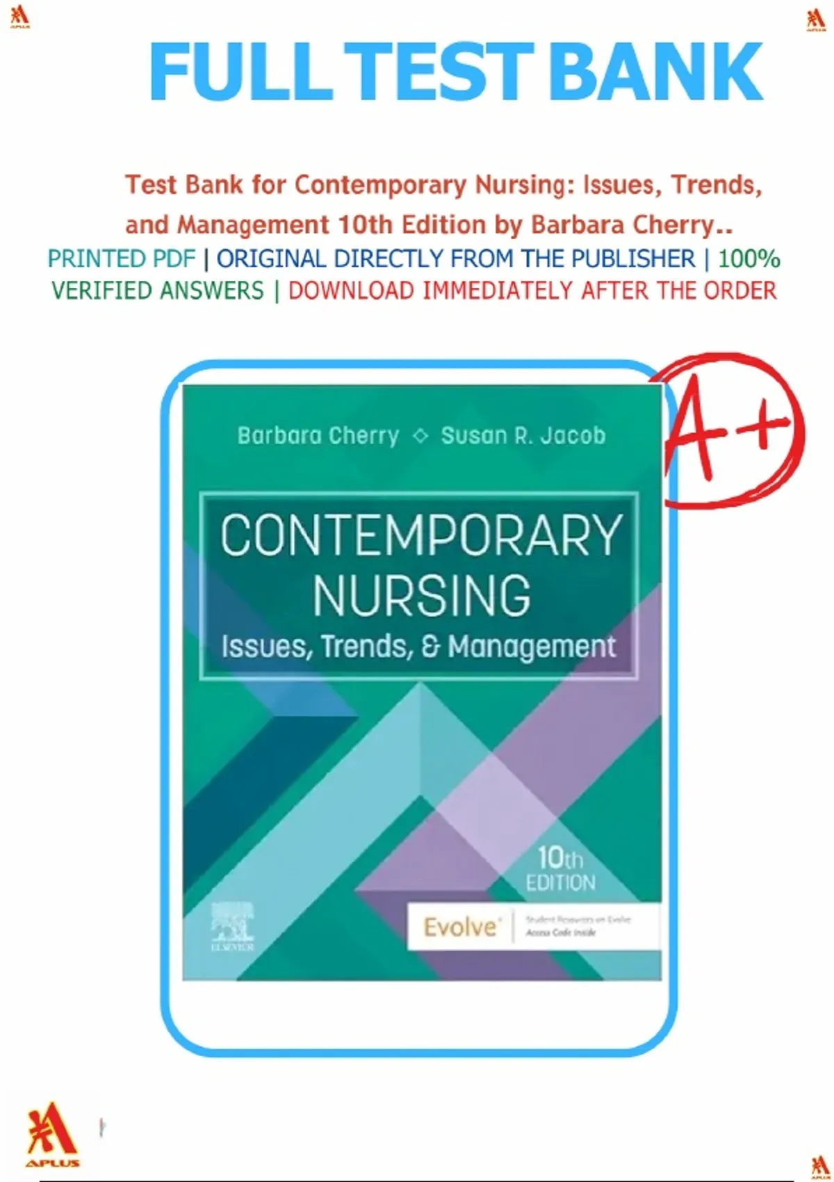 Test Bank for Contemporary Nursing: Issues, Trends, and Management 10th Edition by Barbara Cherry.|All chapters 1-28 covered, Graded A+.