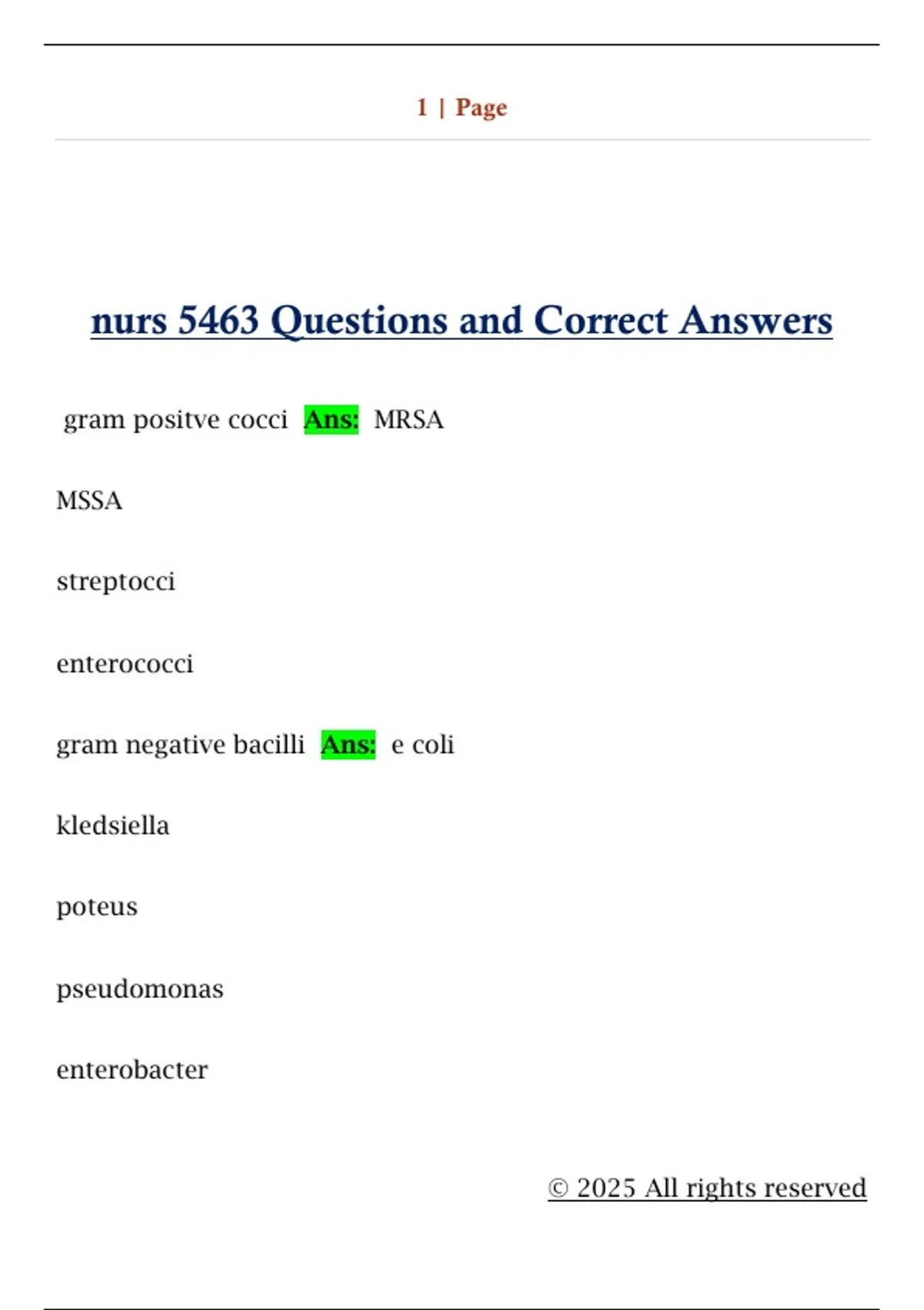 nurs 5463 Questions and Correct Answers
