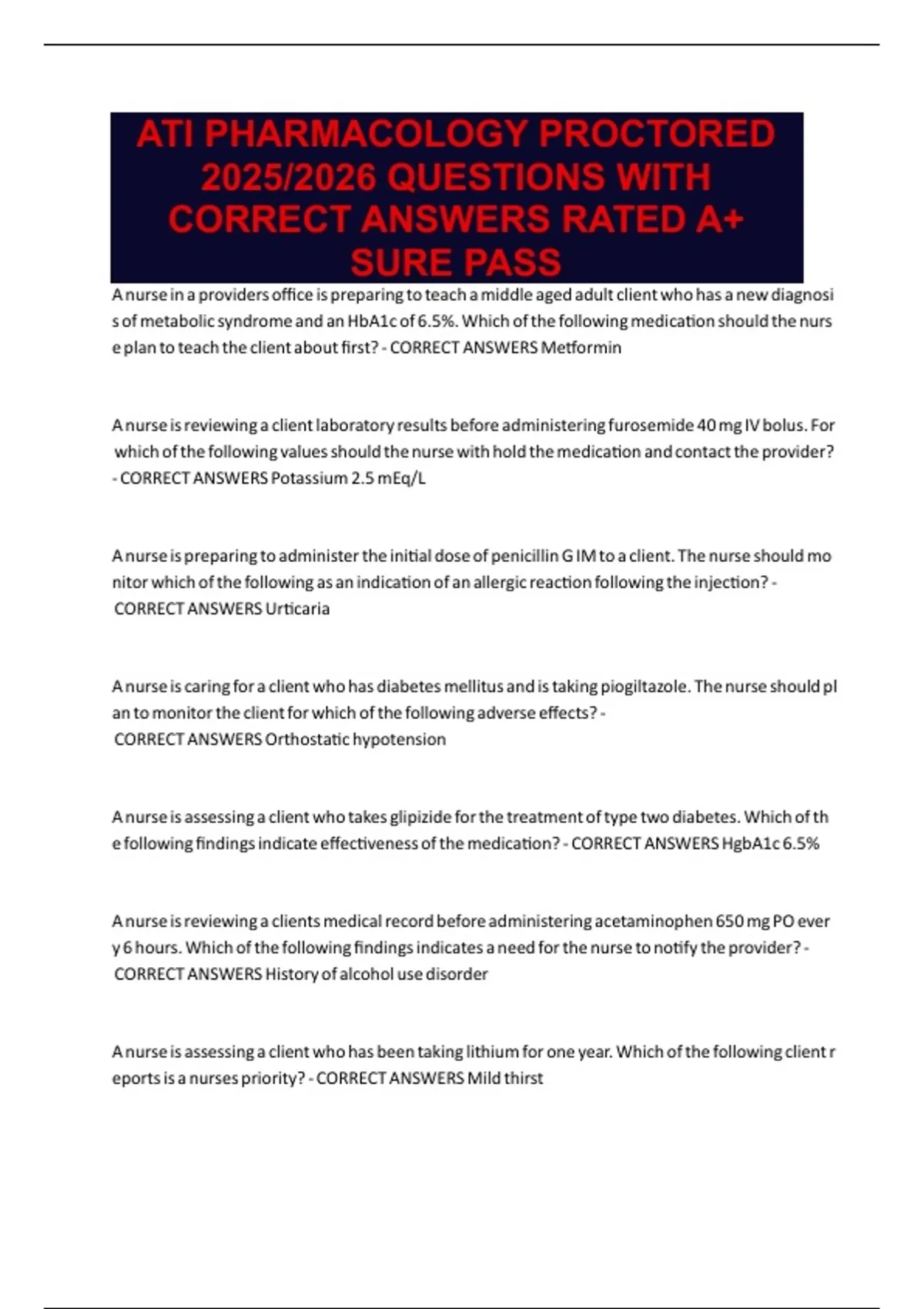CORRECT ANSWERS RATED A+