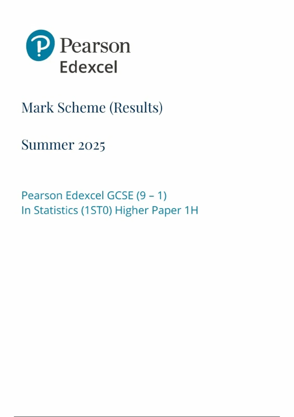 2025 PEARSON EDEXCEL GCSE STATISTICS PAPER 1 MARK SCHEME (1ST0/1H: Higher Tier)