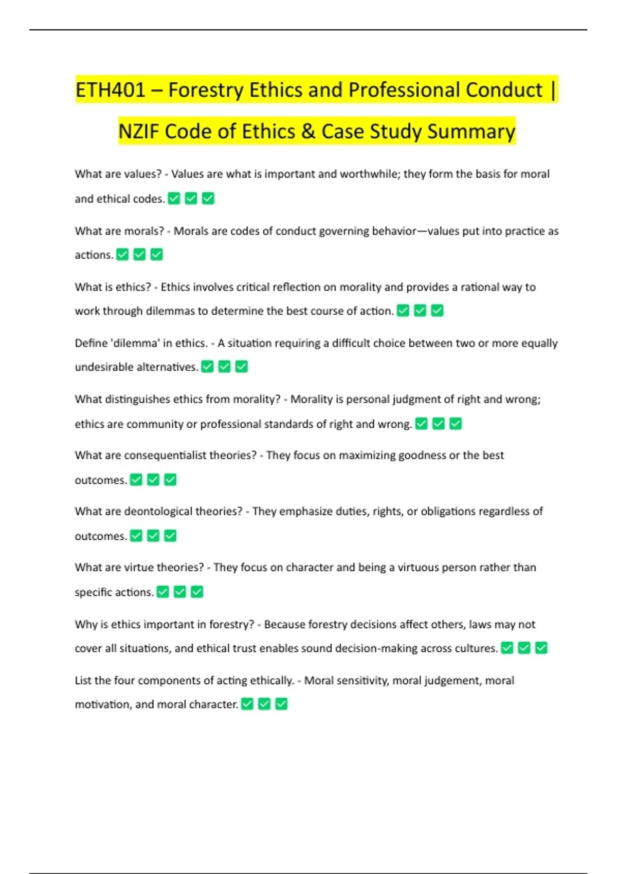 ETH401 – Forestry Ethics and Professional Conduct | NZIF Code of Ethics & Case Study Summary