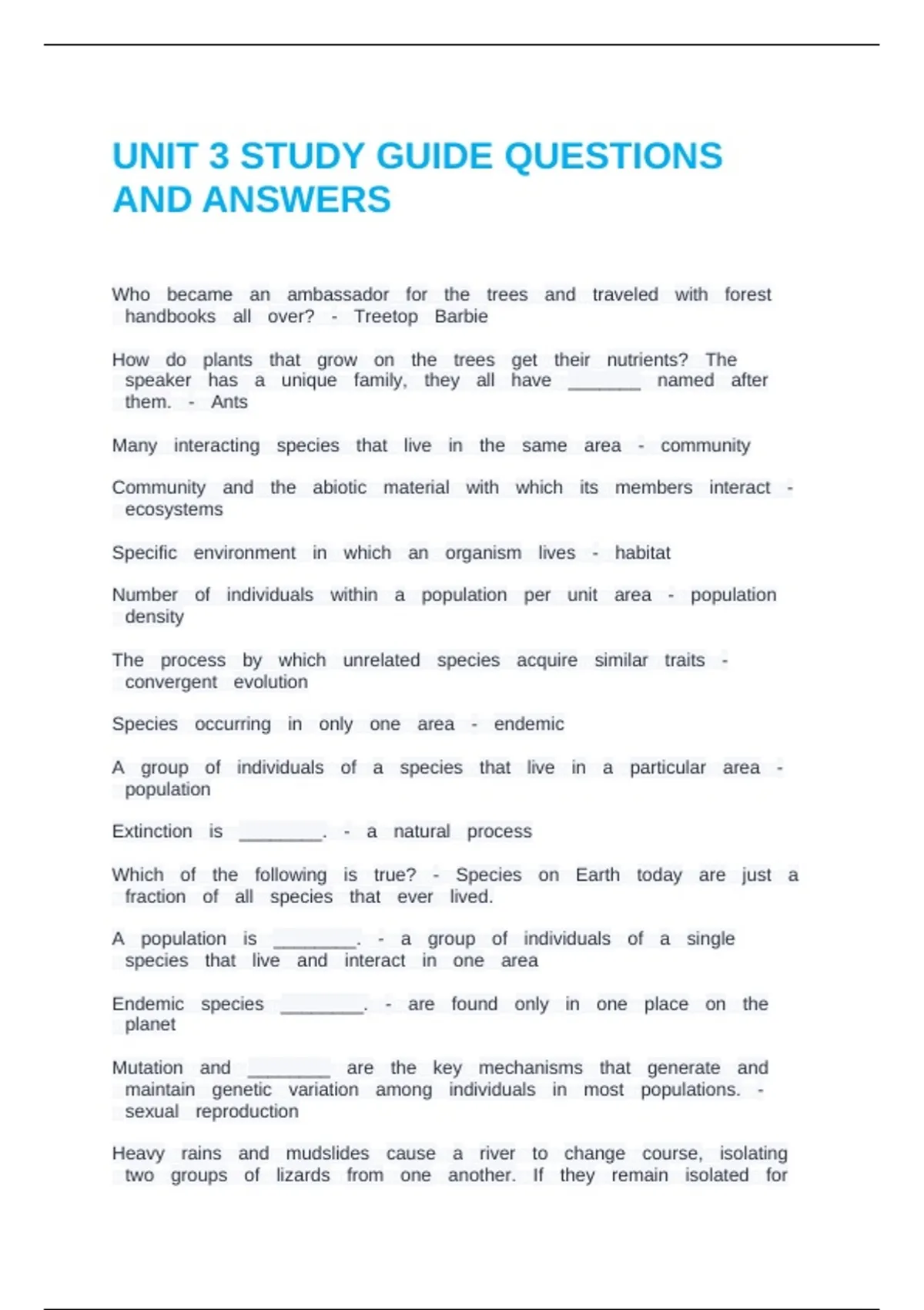 UNIT 3 STUDY GUIDE QUESTIONS AND ANSWERS