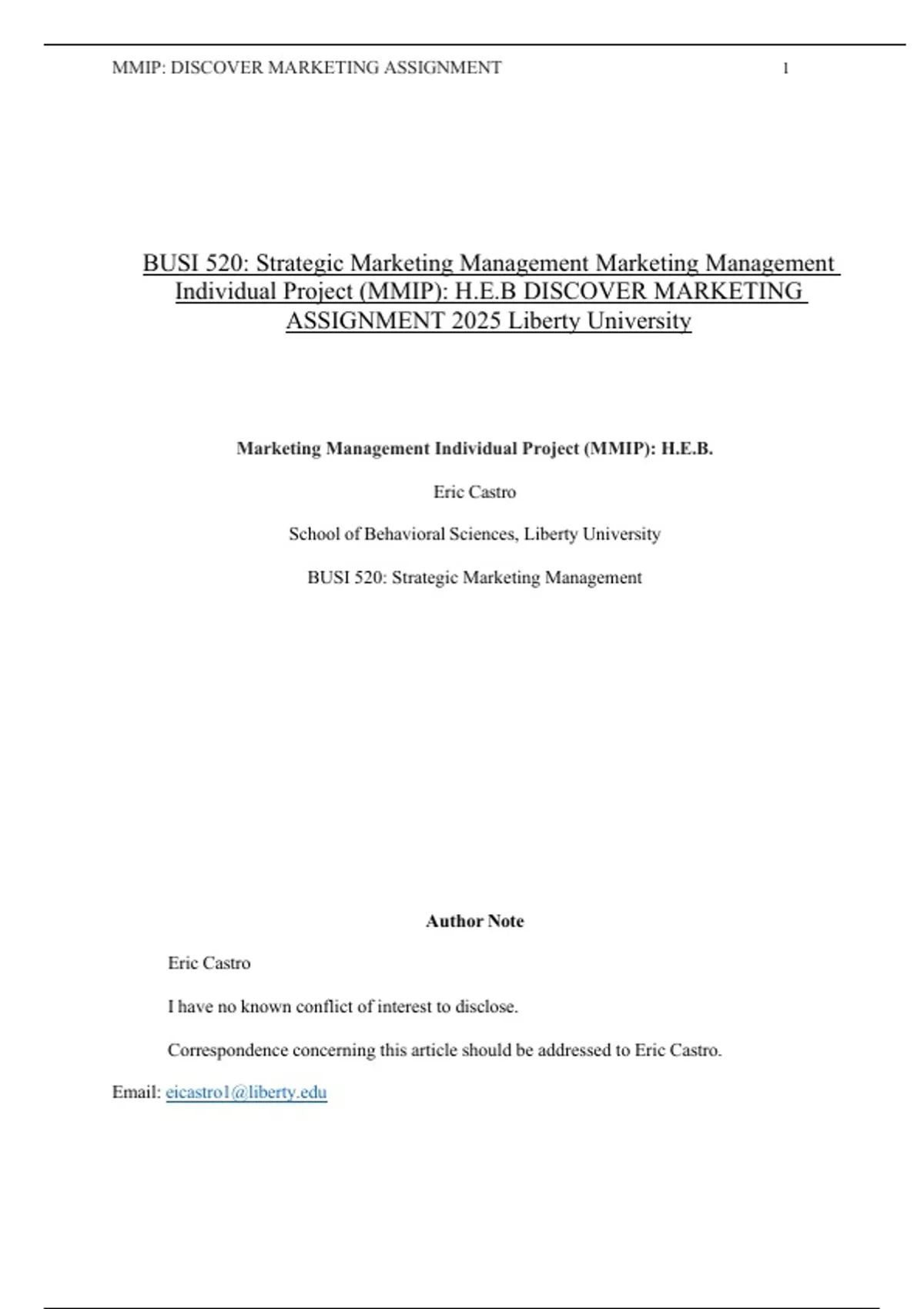 Marketing Management Individual Project (MMIP): H.E.B.