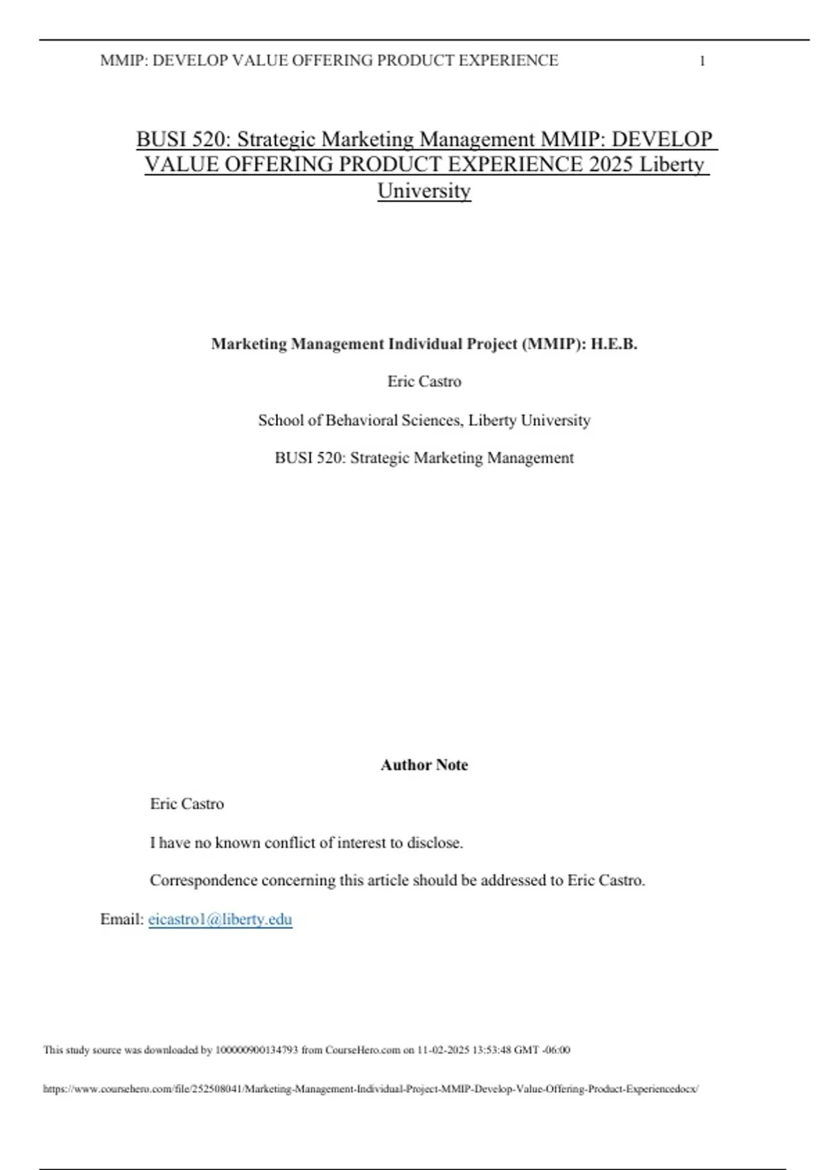 BUSI 520: Strategic Marketing Management MMIP: DEVELOP VALUE OFFERING PRODUCT EXPERIENCE 2025 Liberty University
