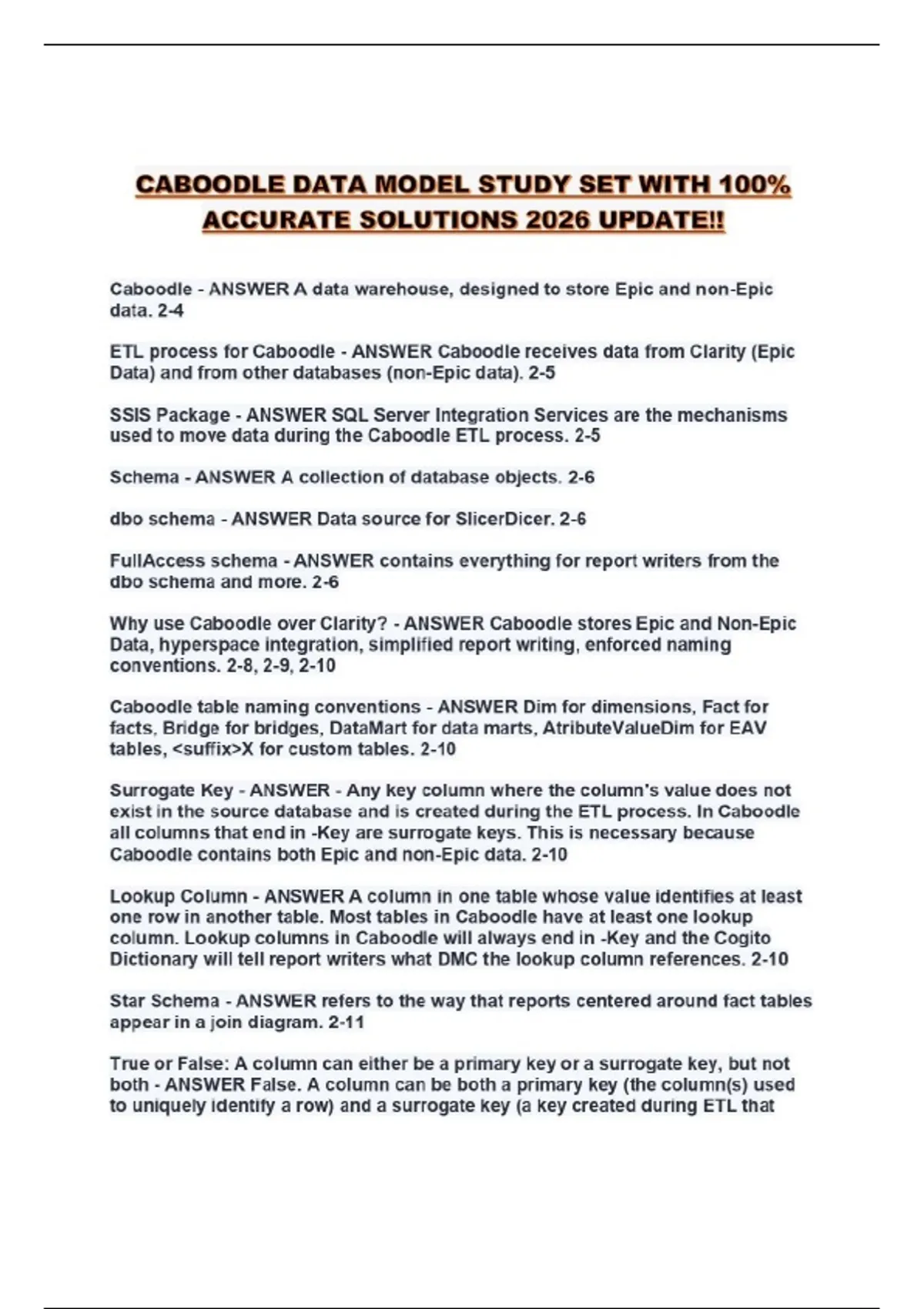 CABOODLE DATA MODEL STUDY SET WITH 100% ACCURATE SOLUTIONS 2026 UPDATE!!...