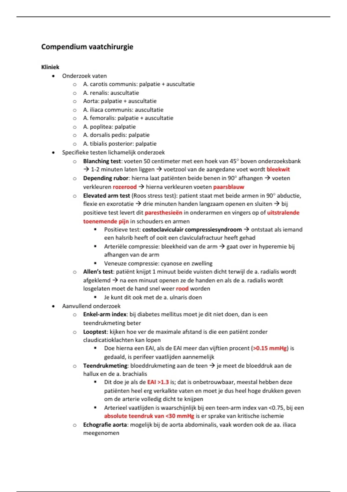 ▪ Arteriële compressie: bleekheid van de arm → gaat over in hyperemie bij