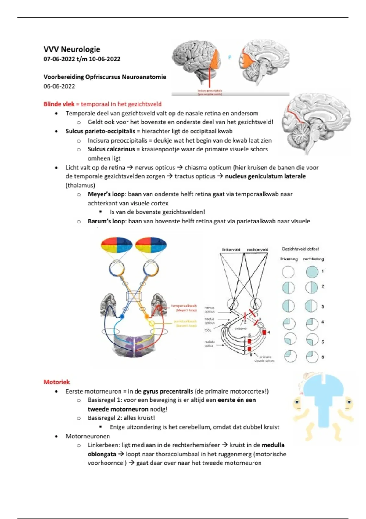 • Visus: van beide ogen gaat rechtergezichtsveld naar linkerhemisfeer en en linkergezichtsveld