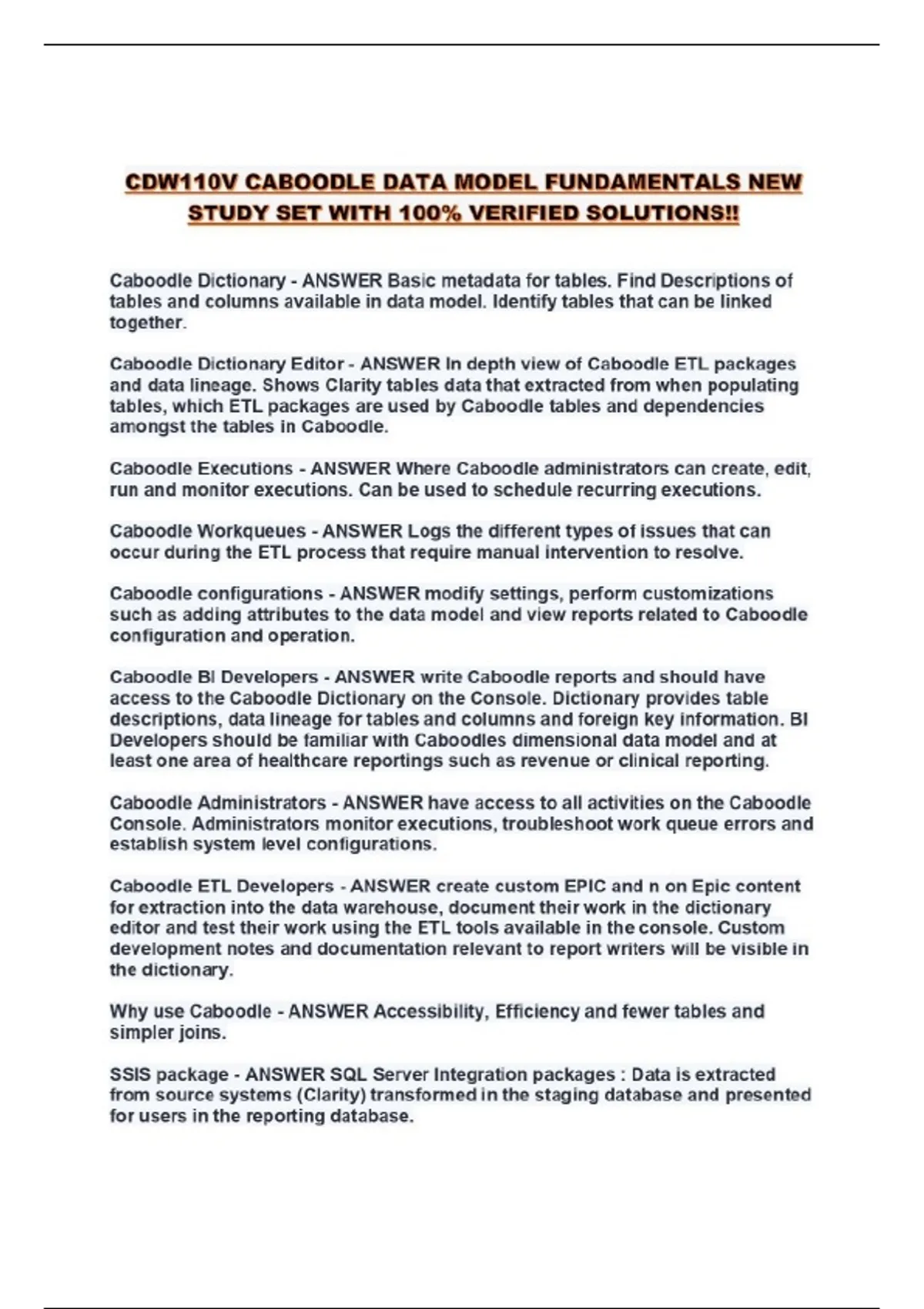 CDW110V CABOODLE DATA MODEL FUNDAMENTALS NEW STUDY SET WITH 100% VERIFIED SOLUTIONS!!...