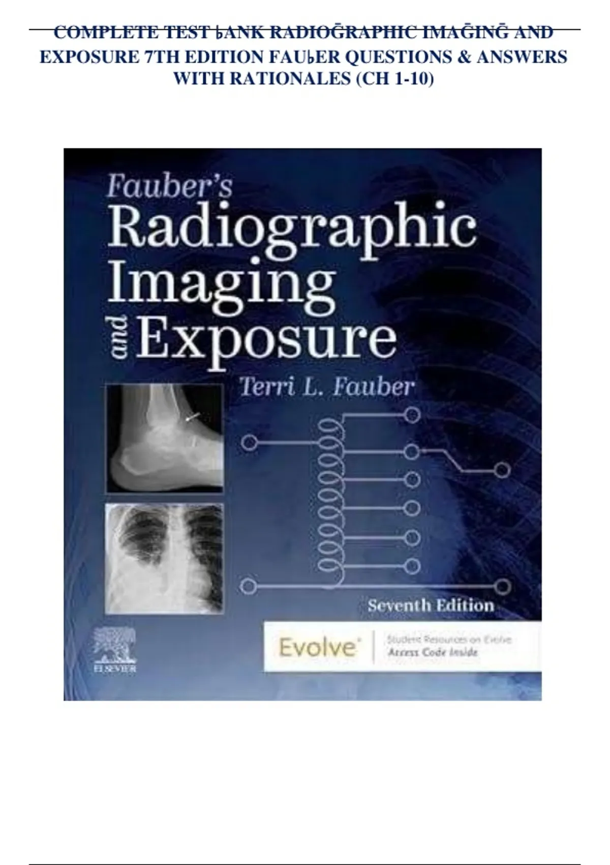 **Product Description:** This comprehensive test bank is designed to accompany the 7th edition of "Radiographic Imaging and Exposure" by Fauber, a renowned textbook in the field of radiography. The test bank covers chapters 1-10 and provides students and instructors with a valuable resource to assess knowledge and understanding of radiographic imaging and exposure principles. **Key Features:** * Complete test bank with questions, answers, and rationales for chapters 1-10 * Covers key topics in radiographic imaging and exposure, including radiation safety, image formation, and patient positioning * Includes a variety of question types, such as multiple-choice, true/false, and short-answer questions * Rationales for each question provide detailed explanations and help students understand the underlying concepts * Ideal for students preparing for exams, quizzes, or certification tests in radiography * Also suitable for instructors looking for a reliable assessment tool to evaluate student knowledge and understanding **Benefits:** * Helps students reinforce their understanding of radiographic imaging and exposure concepts * Provides instructors with a convenient and comprehensive assessment tool * Enhances learning outcomes and exam preparation * Supports the development of critical thinking and problem-solving skills **Target Audience:** * Students of radiography, radiologic technology, and medical imaging * Instructors teaching radiography and radiologic technology courses * Professionals seeking to enhance their knowledge and skills in radiographic imaging and exposure This test bank is an essential resource for anyone seeking to master the principles of radiographic imaging and exposure. With its comprehensive coverage of key topics and variety of question types, it is an ideal tool for students and instructors alike.