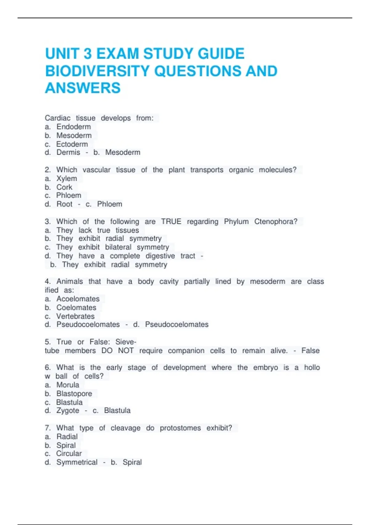 UNIT 3 EXAM STUDY GUIDE BIODIVERSITY QUESTIONS AND ANSWERS