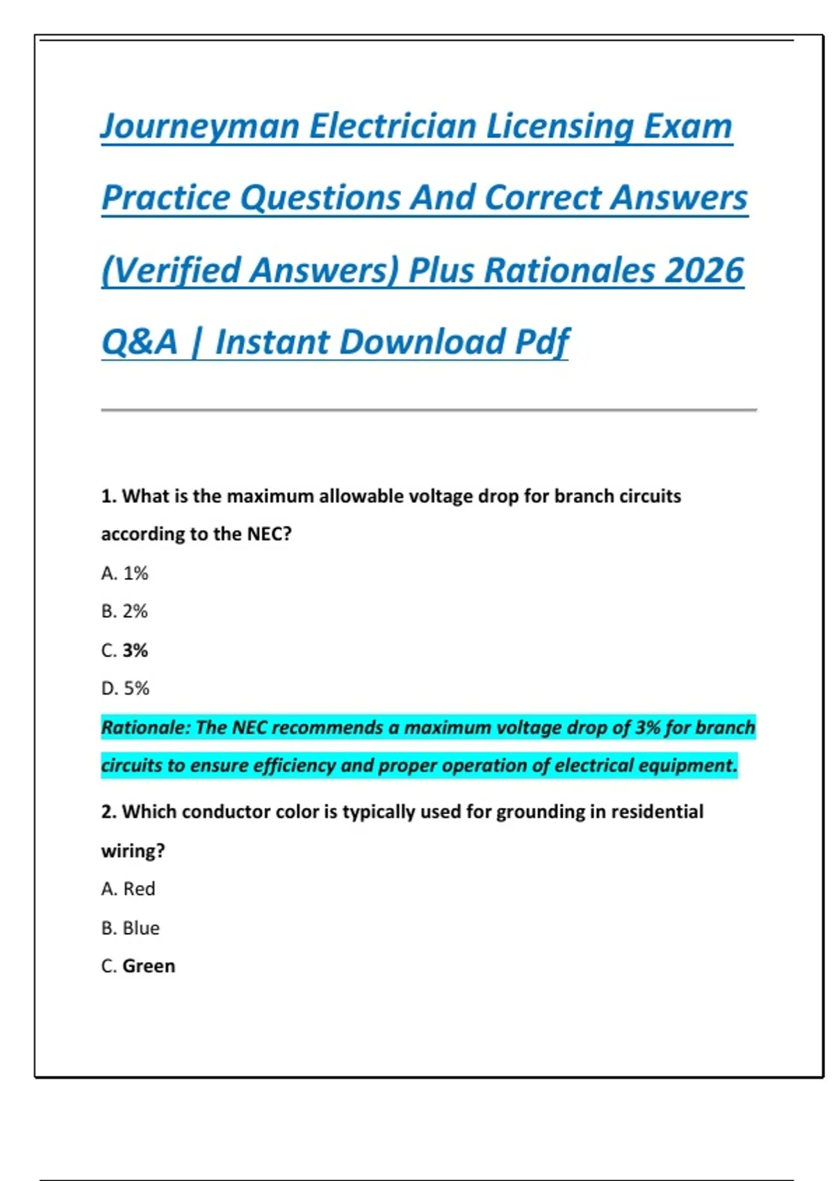 2. Which conductor color is typically used for grounding in residential