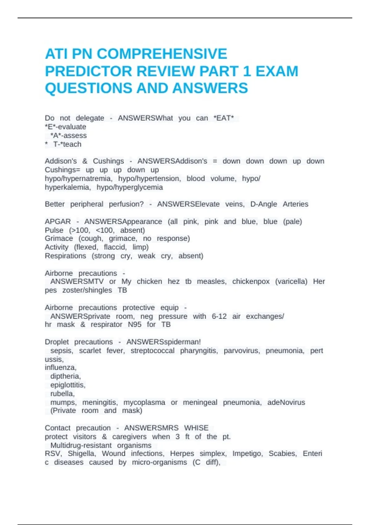 ATI PN COMPREHENSIVE PREDICTOR REVIEW PART 1 EXAM QUESTIONS AND ANSWERS