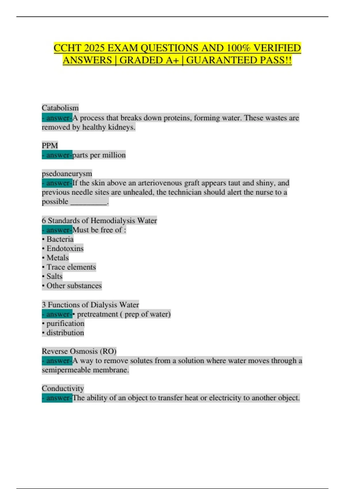 CCHT 2025 EXAM QUESTIONS AND 100% VERIFIED